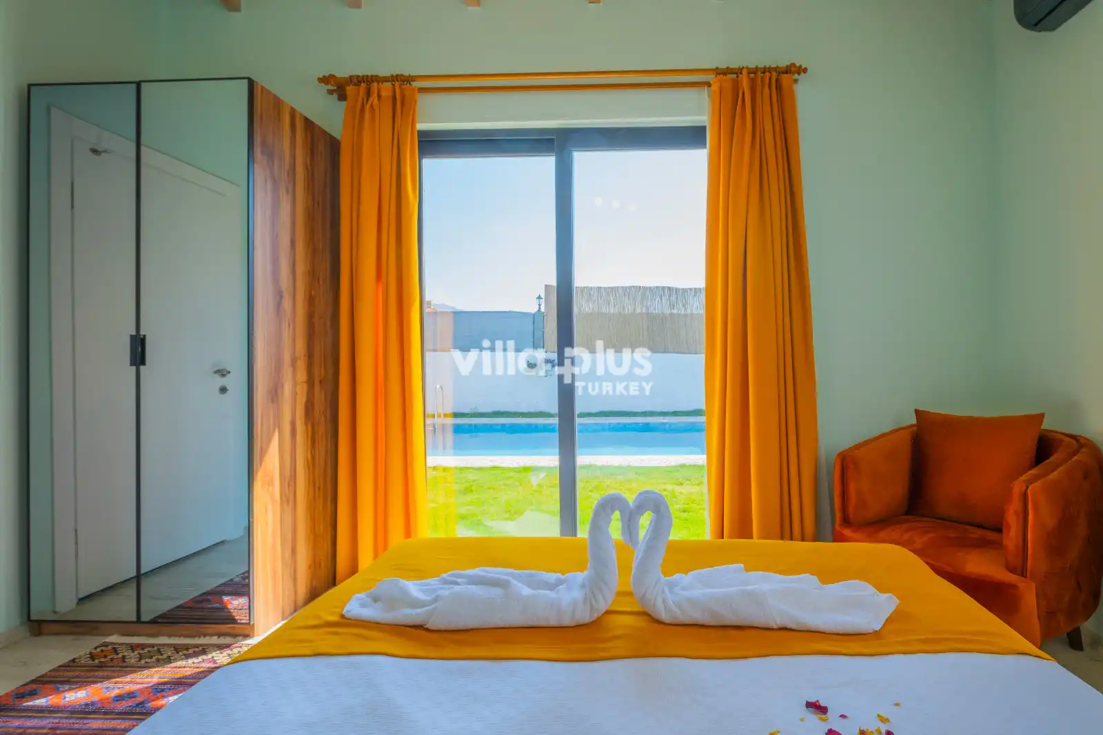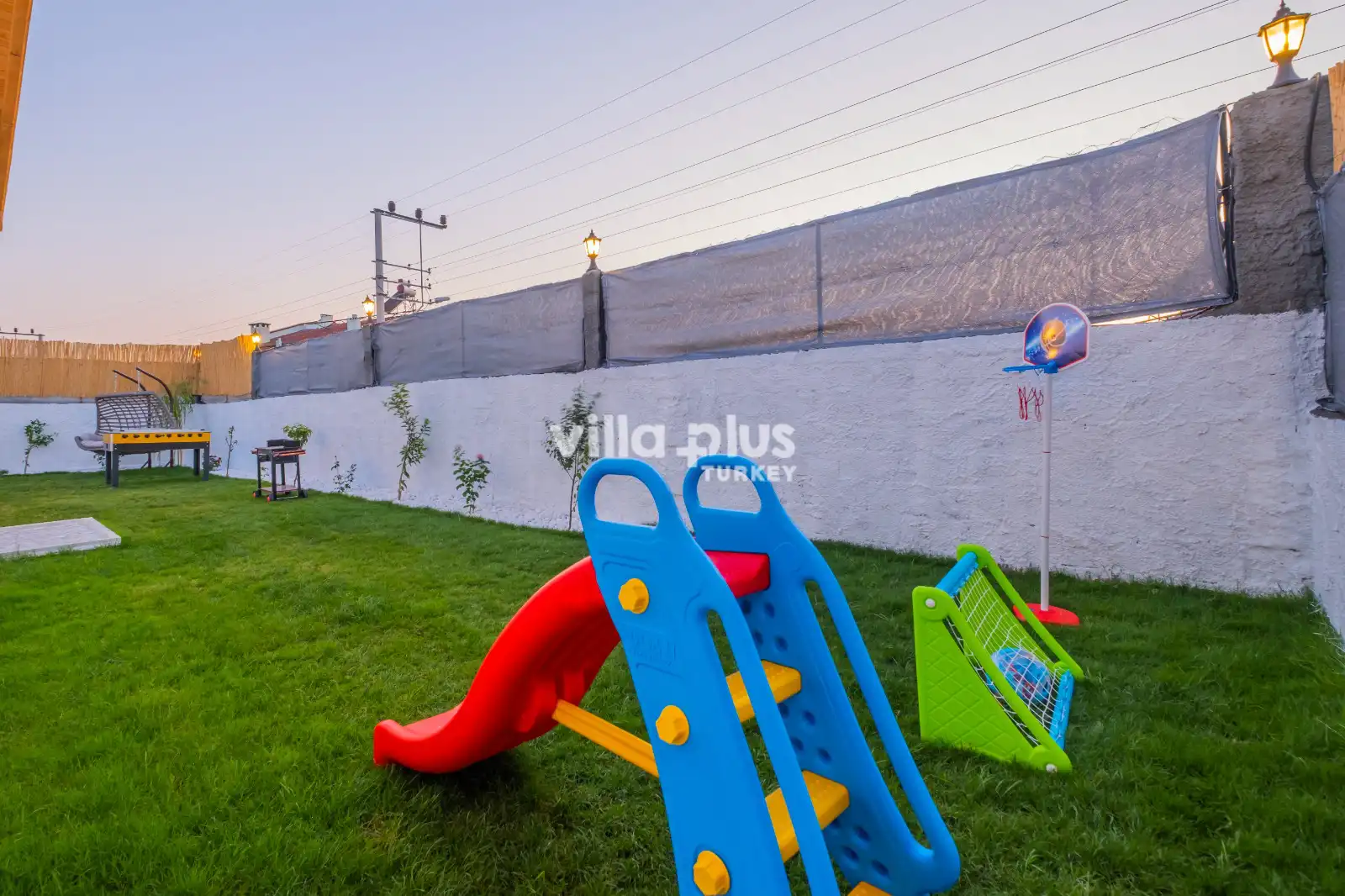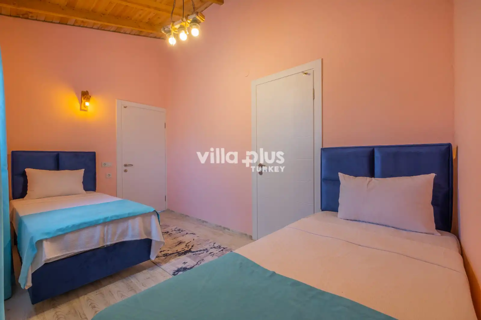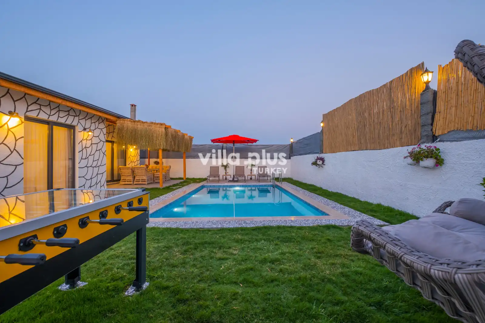 Villa Ozbi, located in Çamköy, Fethiye, is a private pool and a sheltered holiday option. It is a suitable option for children with two bedrooms. It is quiet and sheltered and is preferred for its proximity to the center of Fethiye. The villa has amenities such as a living room-kitchen, TV and air conditioning