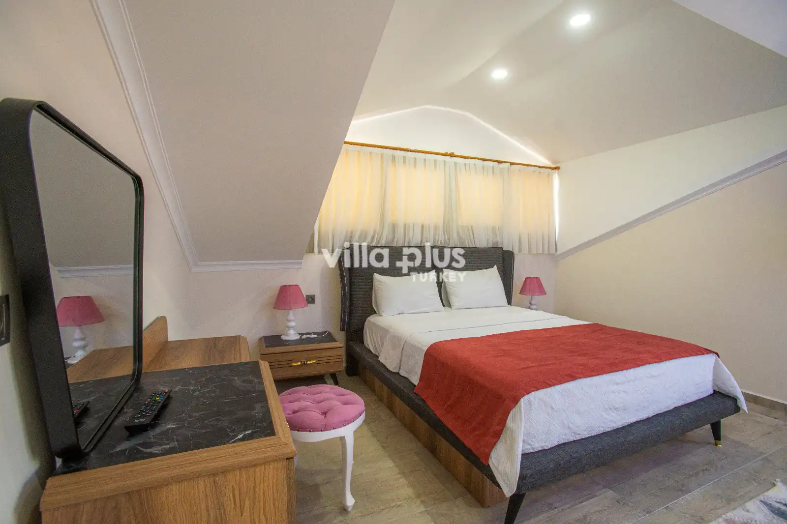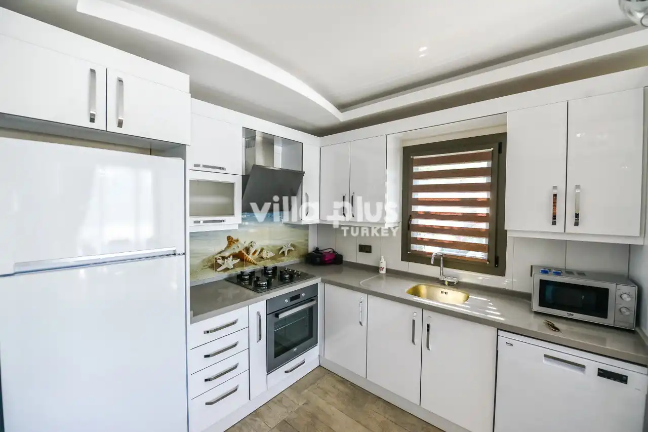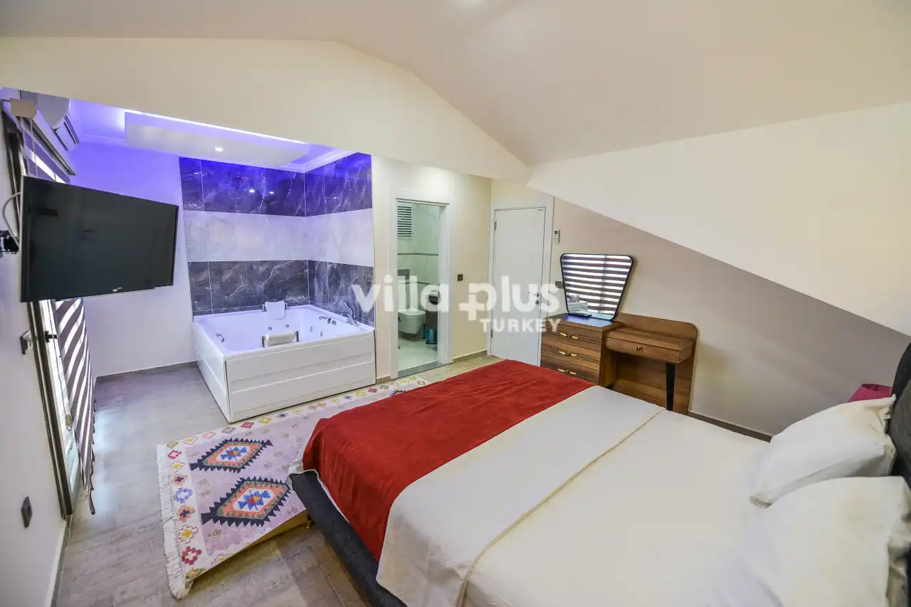 Designed with a modern and stylish architecture, our villa has 3 bedrooms, 3 bathrooms/wc. Our villa, which has an accommodation capacity of 6 people, will be an ideal choice for conservative and large families with its large, sheltered pool of 35 m². With the jacuzzi in our villa, you can get rid of the tiredness that has accumulated on you throughout the year in minutes. Thanks to its detailed kitchen and barbecue, you can prepare the most beautiful meals and set up regular tables with your family. Villa Ramses opens its doors for our valued guests.