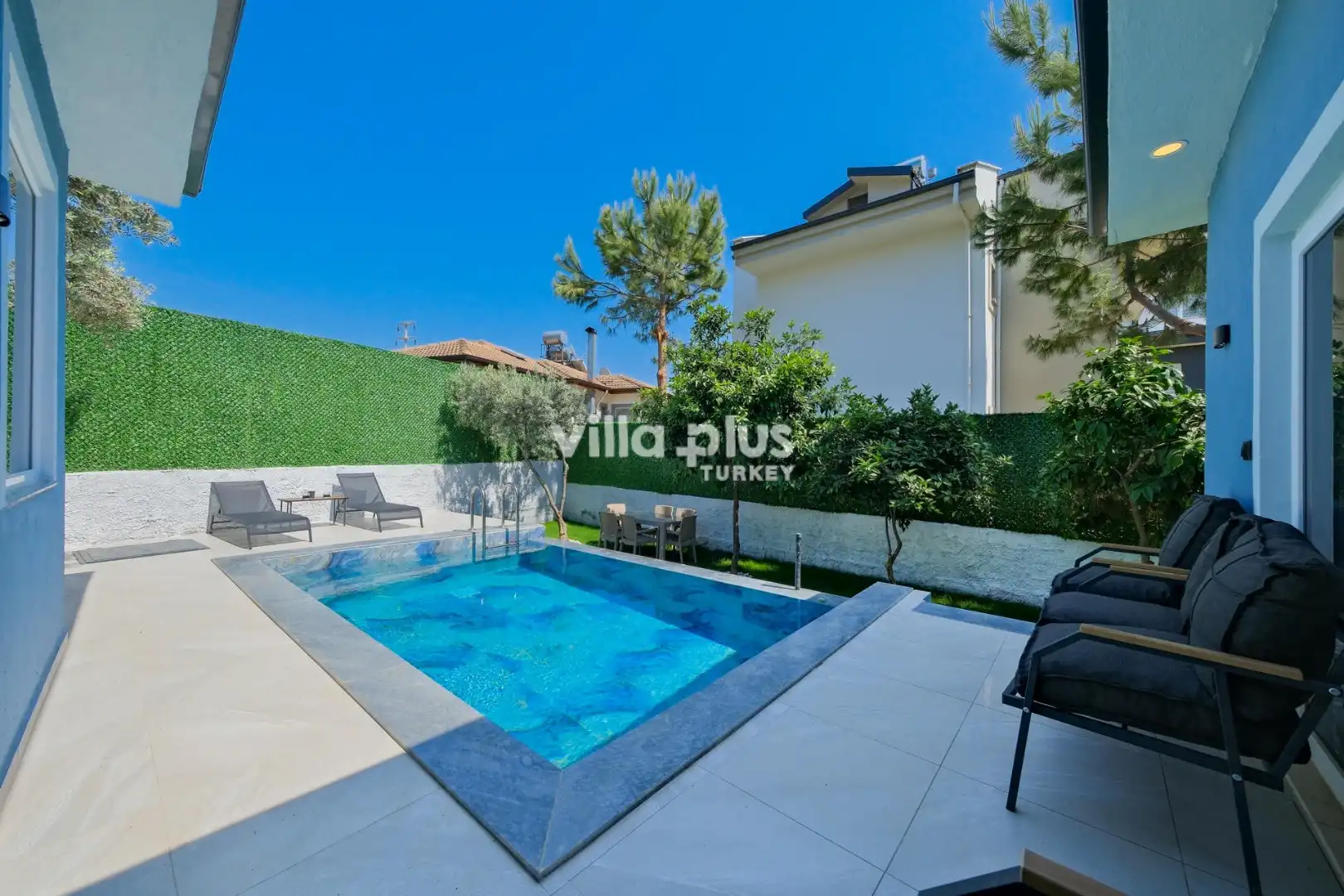 This charming villa, located in the center of Fethiye, offers accommodation for 4 guests with its 2 bedrooms. Its private garden and secluded pool terrace ensure complete privacy from outside view.
