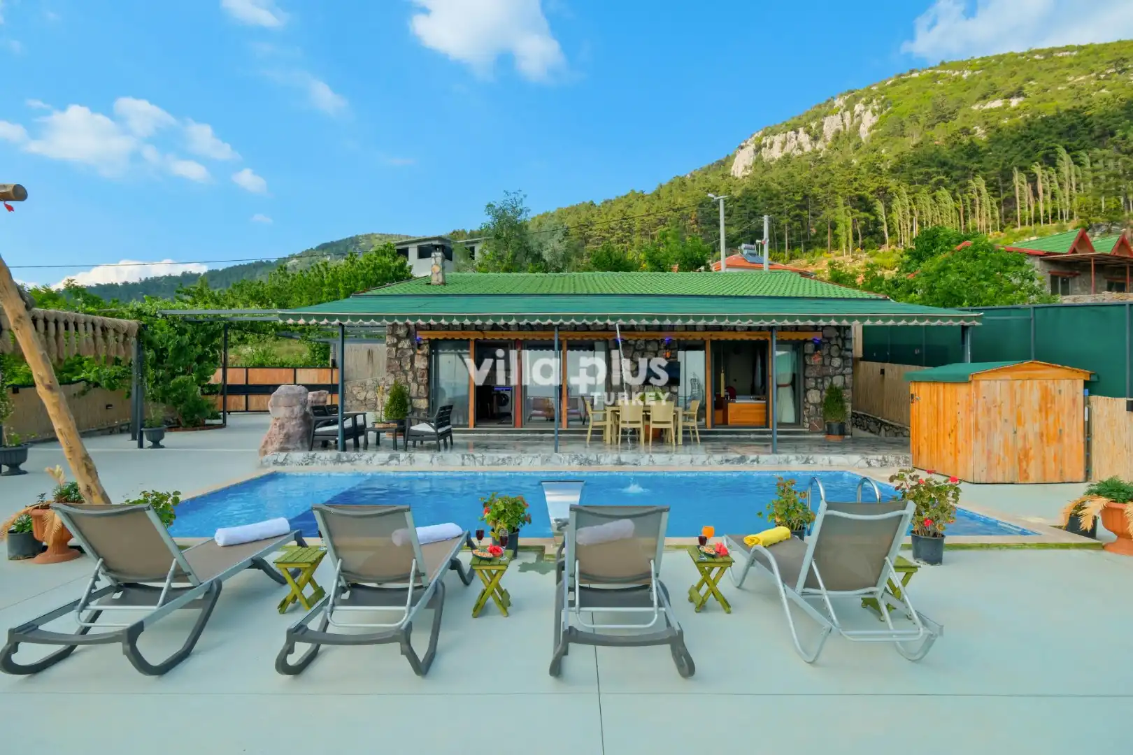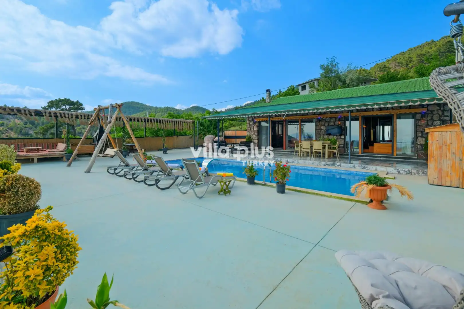 Villa Sartre is located in Fethiye Seydikemer / Bayir. It offers accommodation for 4 people with 2 bedrooms. The nature view and its quiet location are ideal for our guests who want to get away from the sounds and relax. It has a private pool and garden area. Villa Zirve Bayır, which has a wonderful view in its garden, stands out as a good choice for nuclear families and honeymooners.