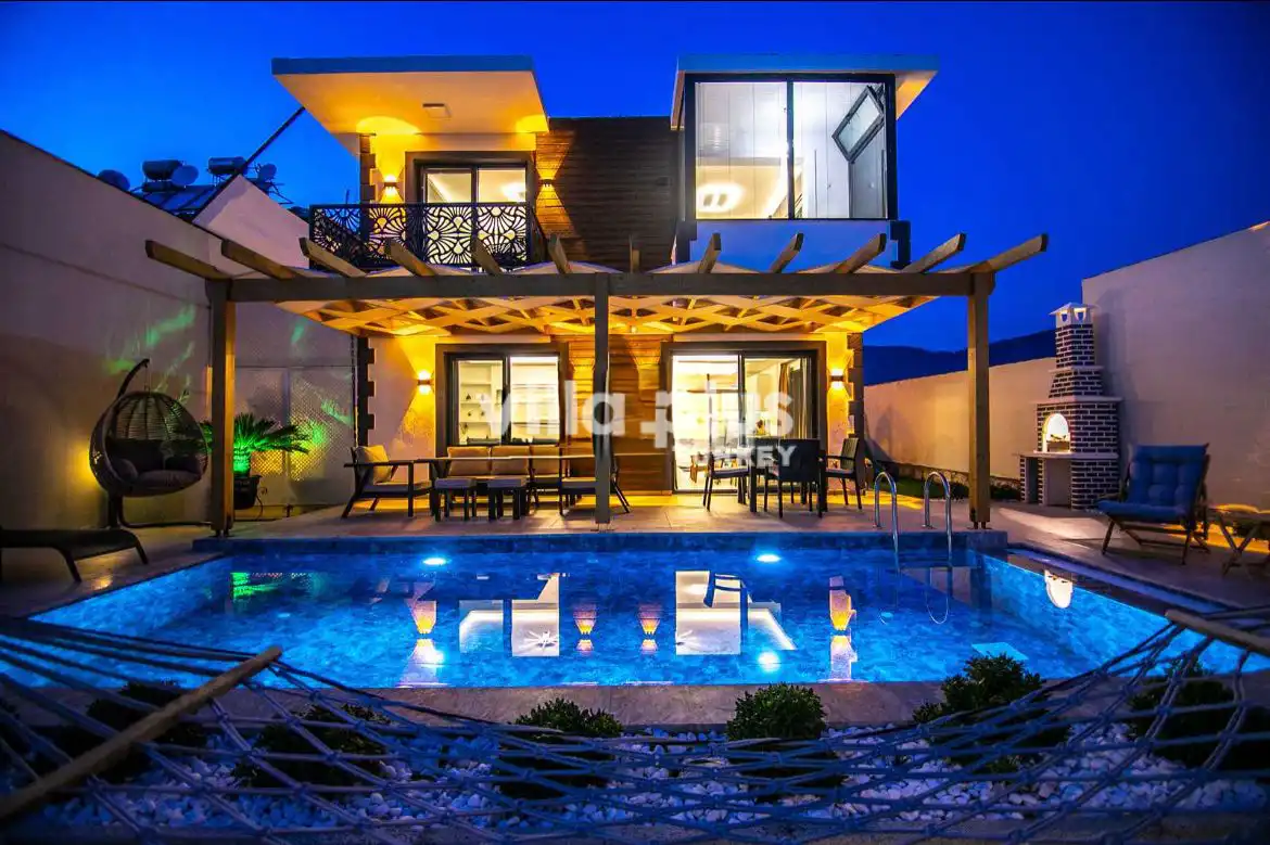 Villa Serenza is an elegant villa located in the peaceful Çamköy area of Fethiye, with a capacity for 4 guests. Its modern design and nature-surrounded setting provide a comfortable holiday experience. The villa features a spacious private pool, offering an ideal space for relaxation. Additionally, the fully enclosed pool makes it an excellent choice for conservative families.