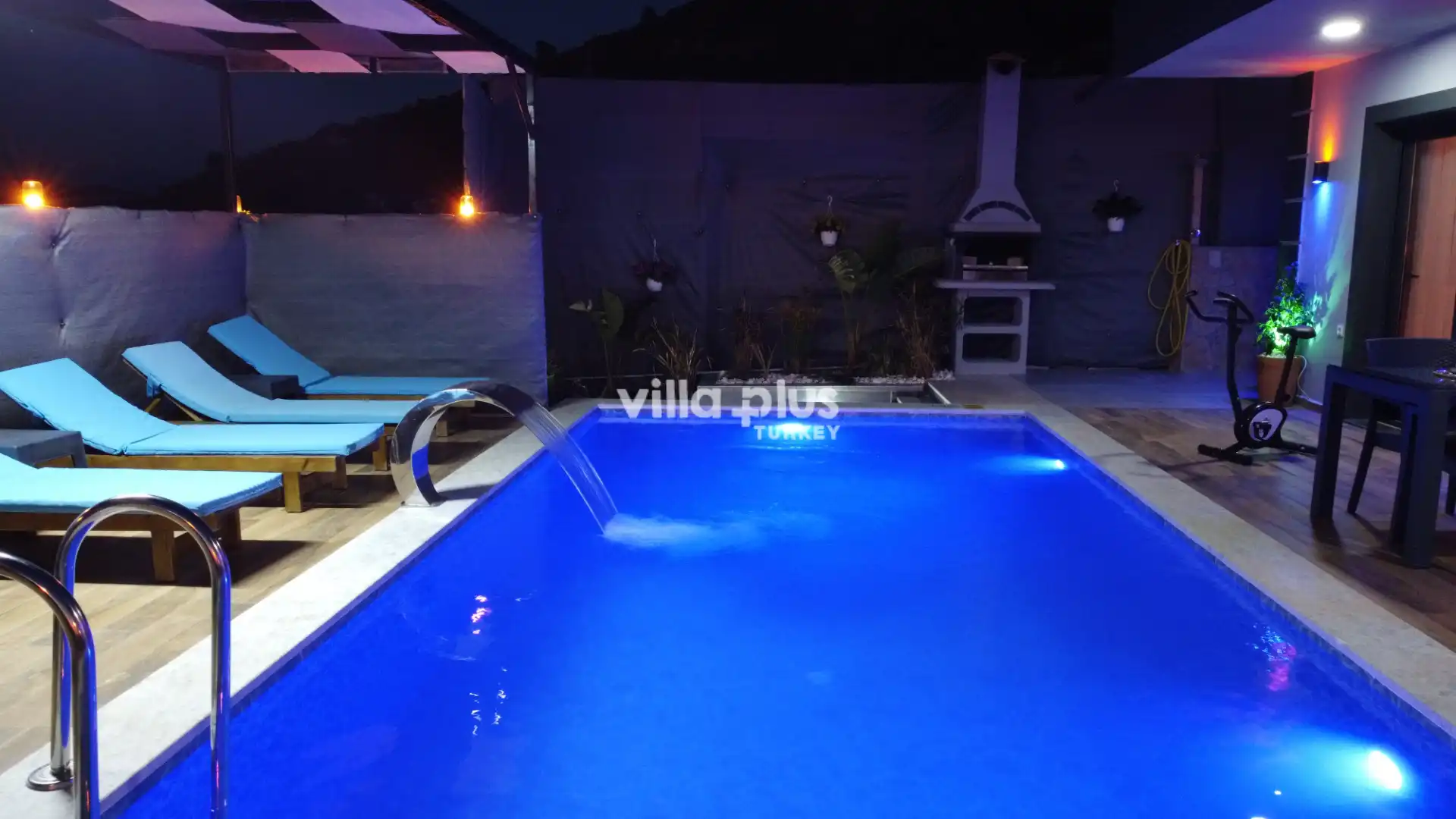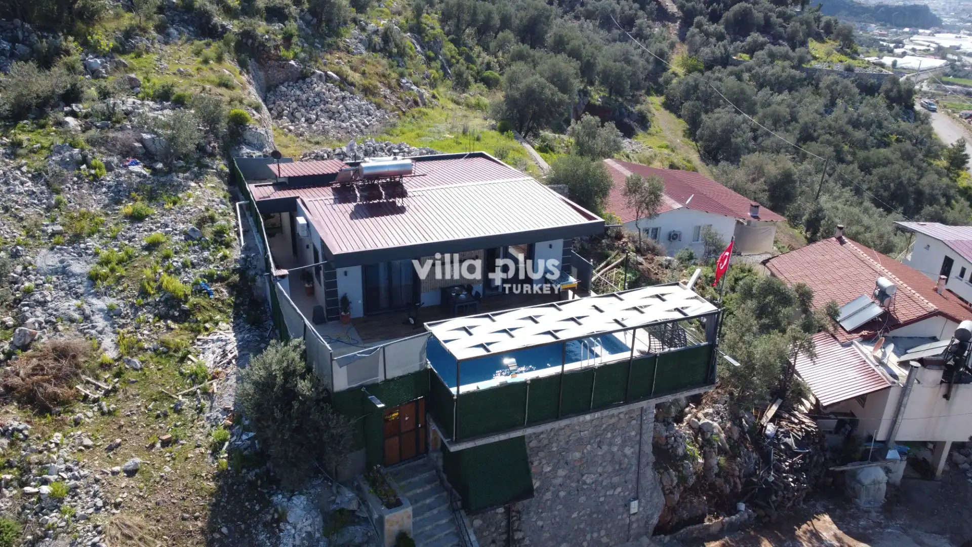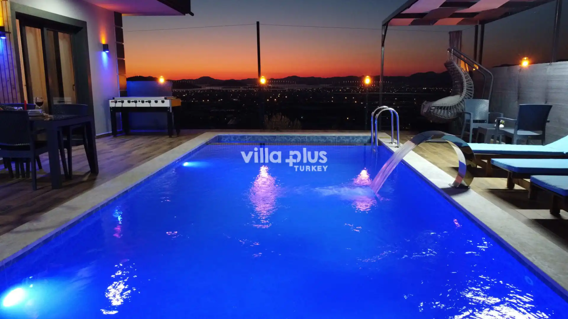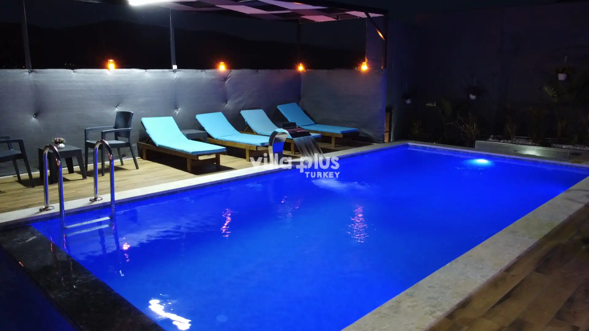 The pool area of the villa is fully secluded and not visible from the outside. This allows guests to enjoy their private pool comfortably and freely. Offering both city and sea views, Villa Silva provides a pleasant atmosphere for those seeking a calm and peaceful holiday.