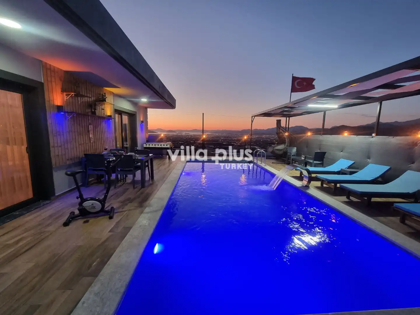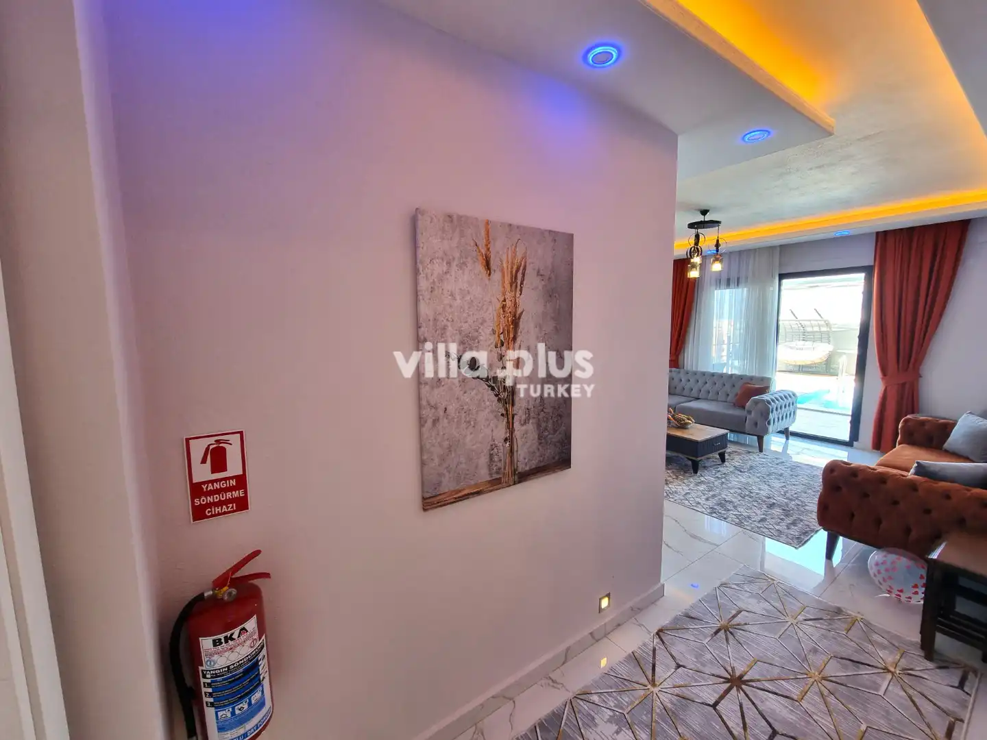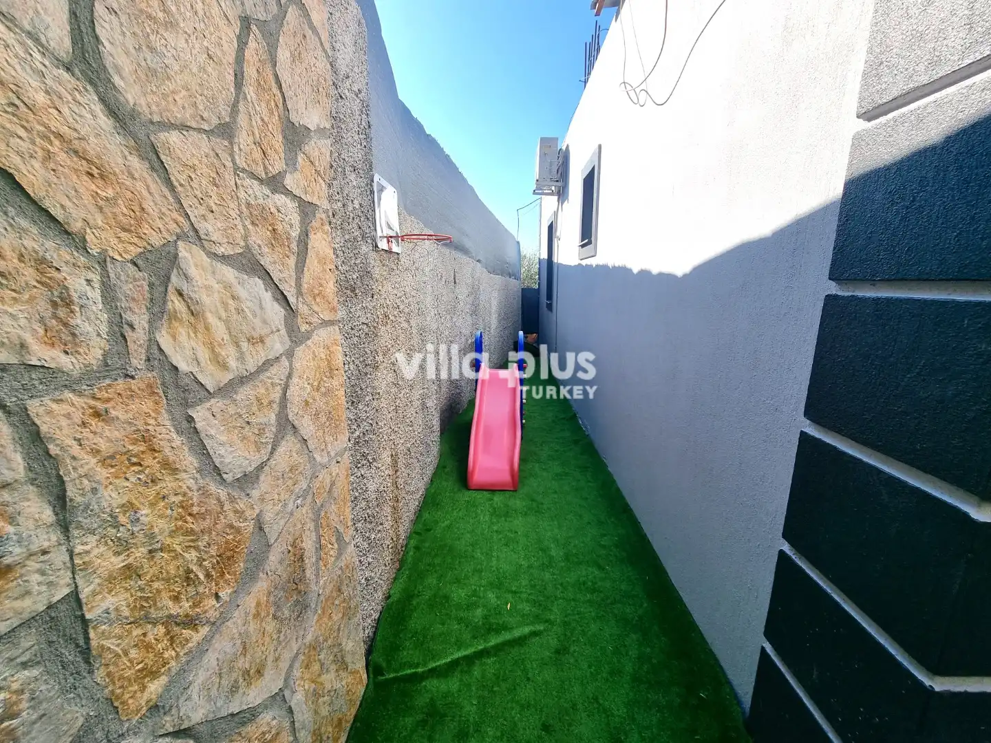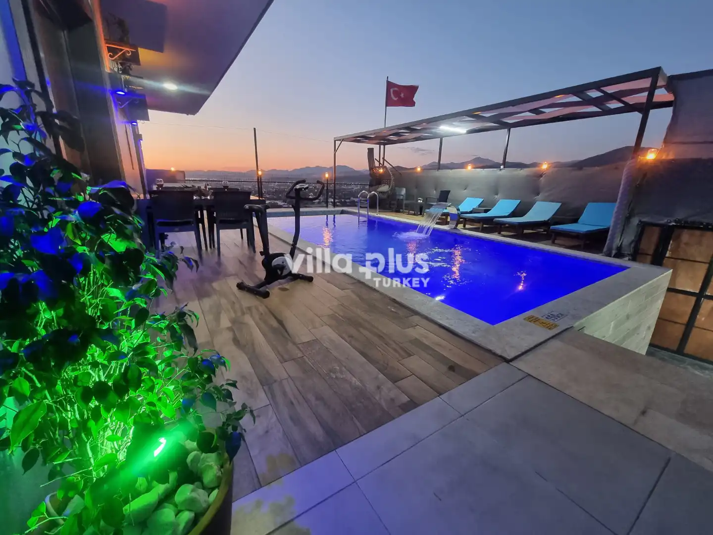 The pool area of the villa is fully secluded and not visible from the outside. This allows guests to enjoy their private pool comfortably and freely. Offering both city and sea views, Villa Silva provides a pleasant atmosphere for those seeking a calm and peaceful holiday.