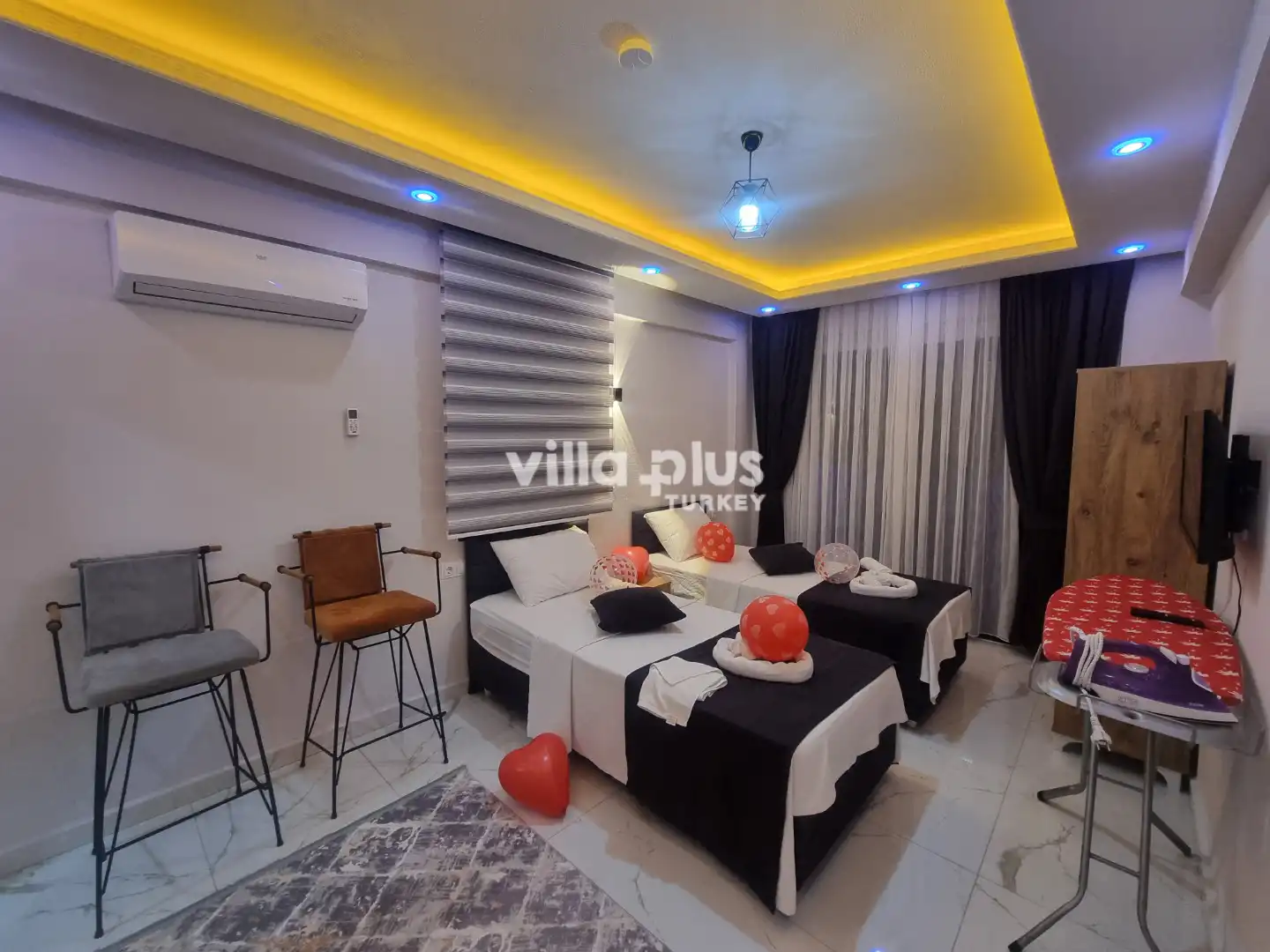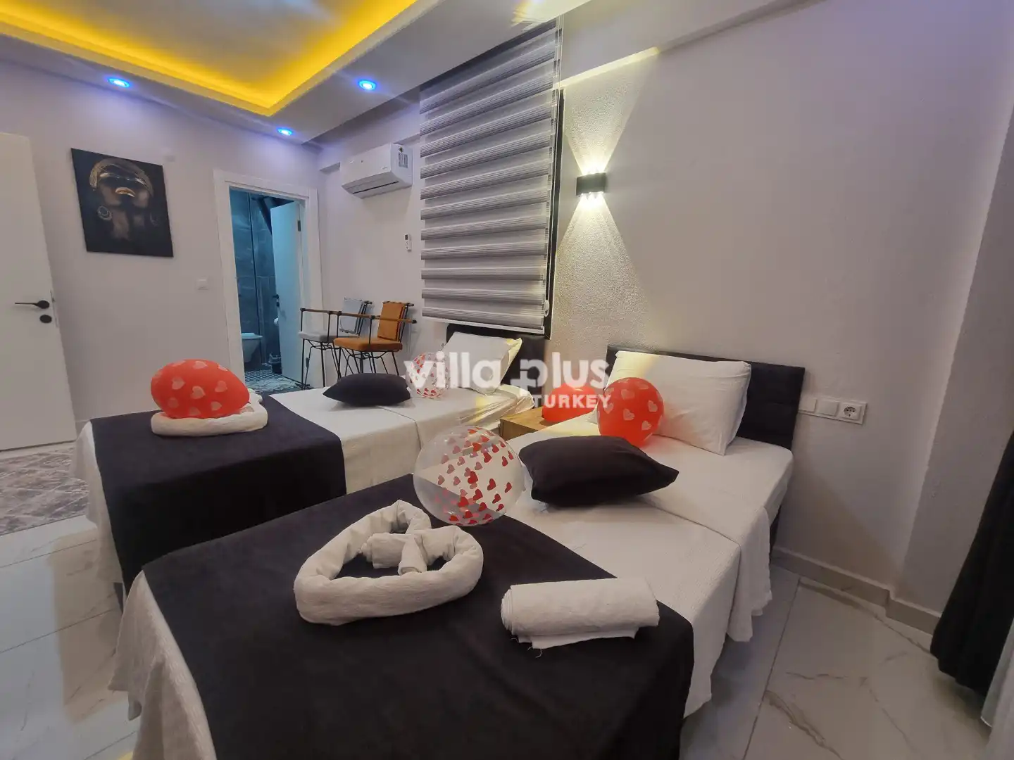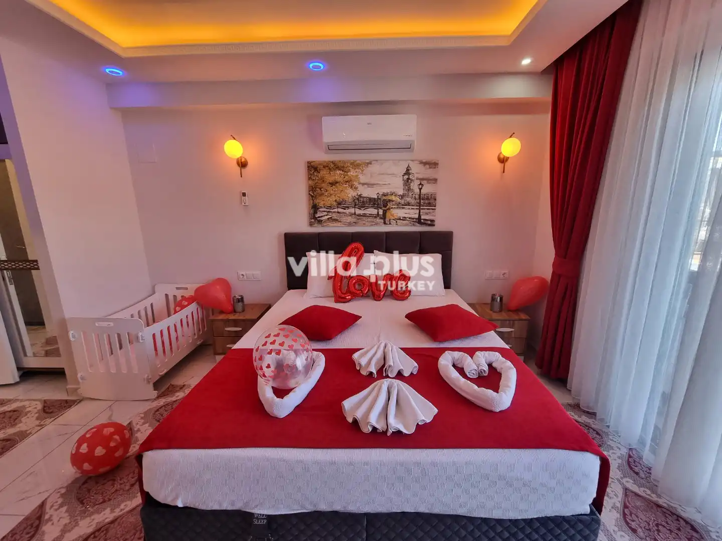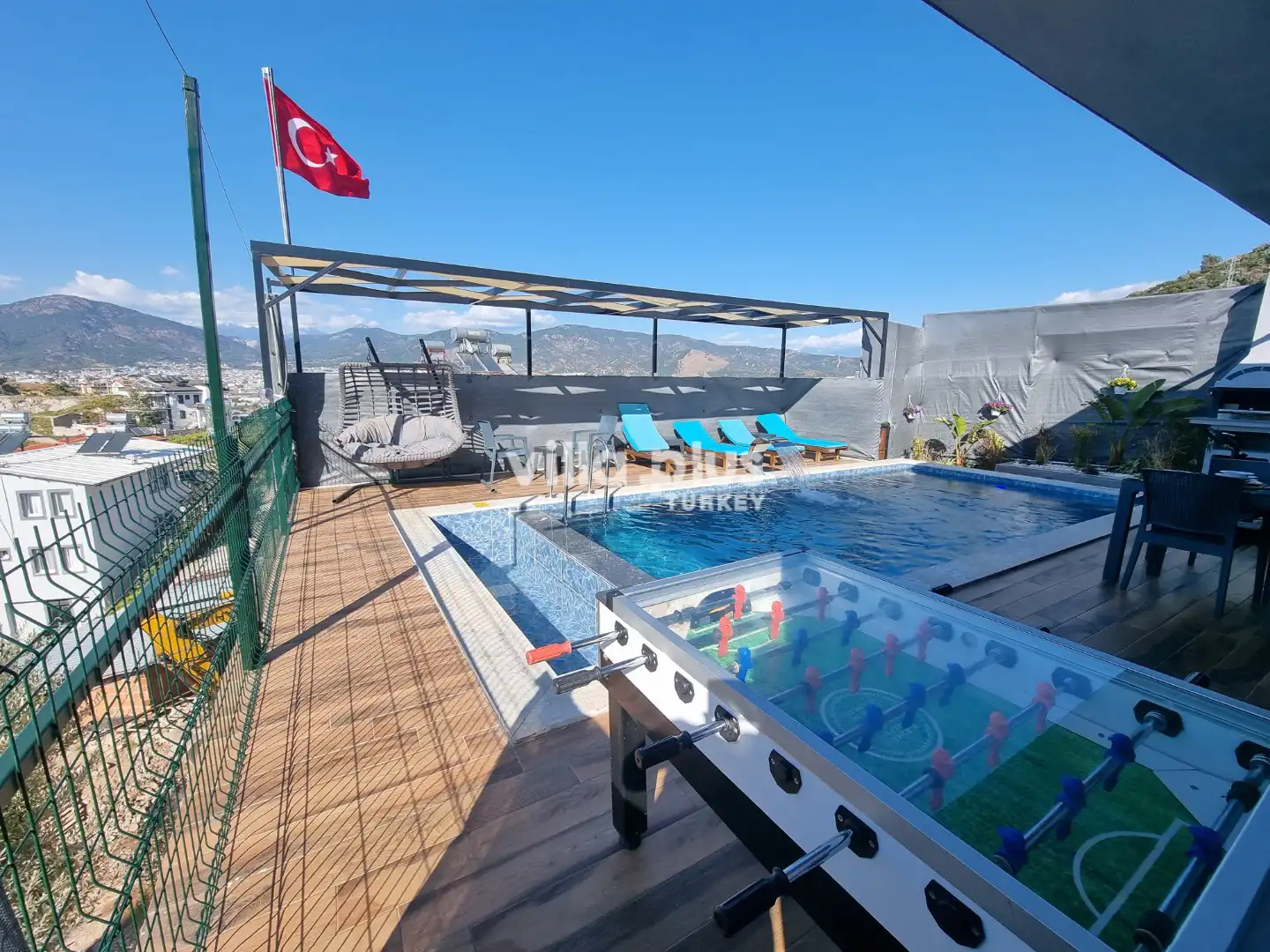 The pool area of the villa is fully secluded and not visible from the outside. This allows guests to enjoy their private pool comfortably and freely. Offering both city and sea views, Villa Silva provides a pleasant atmosphere for those seeking a calm and peaceful holiday.
