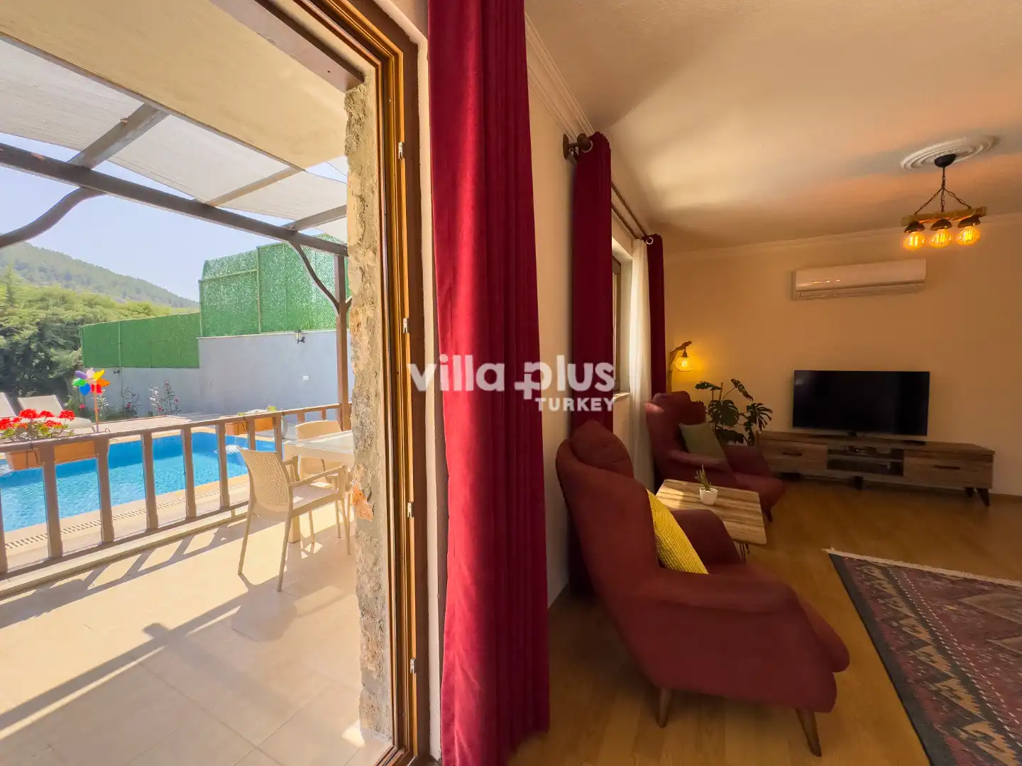 Villa Similar 2 is located in the peaceful Kayaköy area of Fethiye. Nestled in lush greenery, this private villa, with its secluded pool and tranquil atmosphere, offers an ideal holiday option, especially for conservative families and honeymooners.