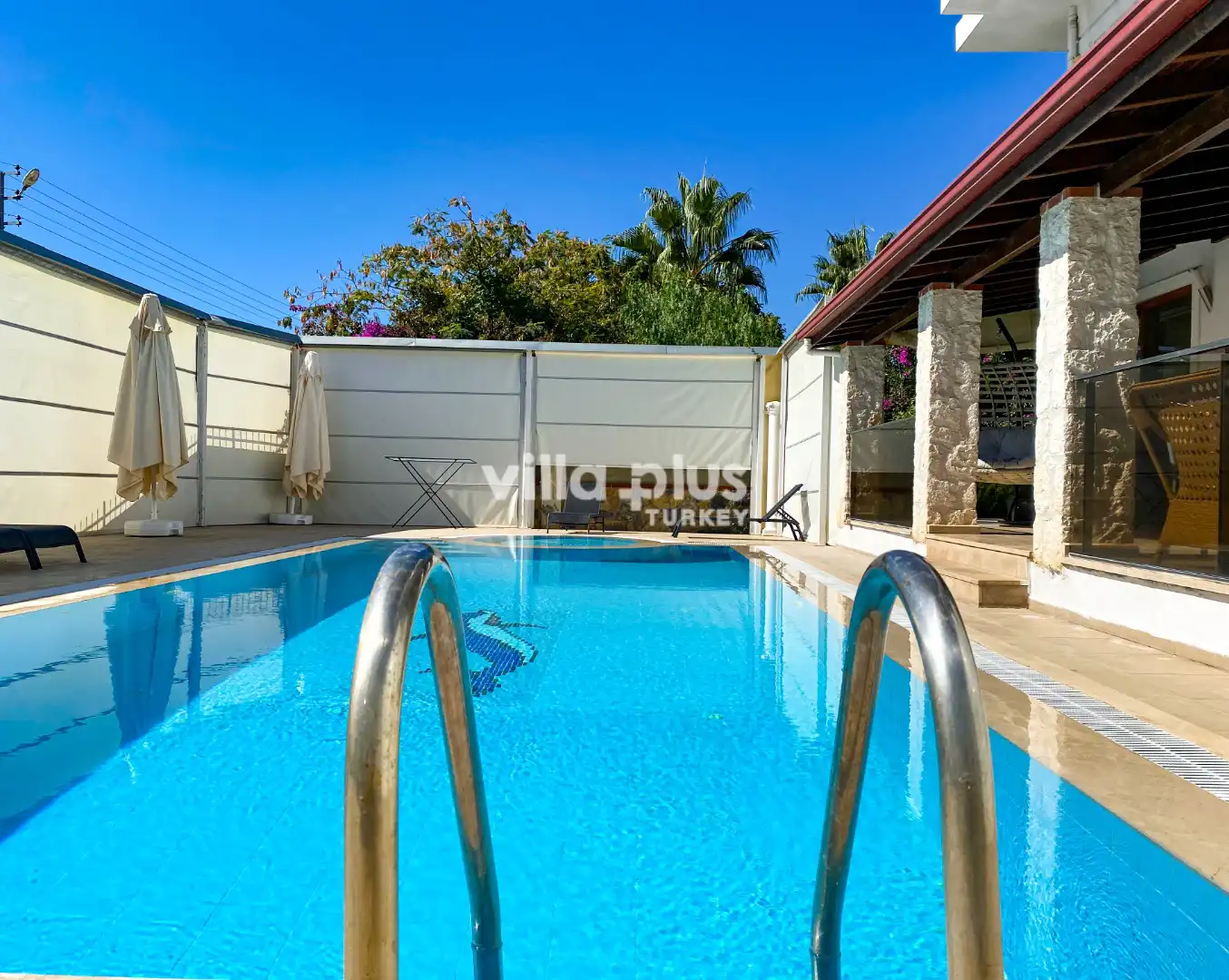 With a total of 4 en-suite bedrooms, the villa accommodates up to 8 guests, and every detail has been carefully considered for your comfort. Set within a spacious, lush garden, Villa Solvera 1 stands out with its bright interiors and large swimming pool.