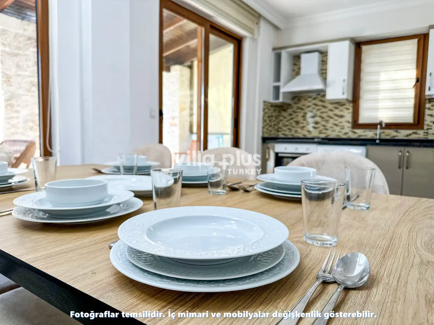 The pool area is equipped with a retractable canopy system, providing full privacy for guests. This feature makes the villa especially suitable for conservative families. At Villa Solvera 2, a tranquil, nature-immersed, and unforgettable holiday experience awaits you.