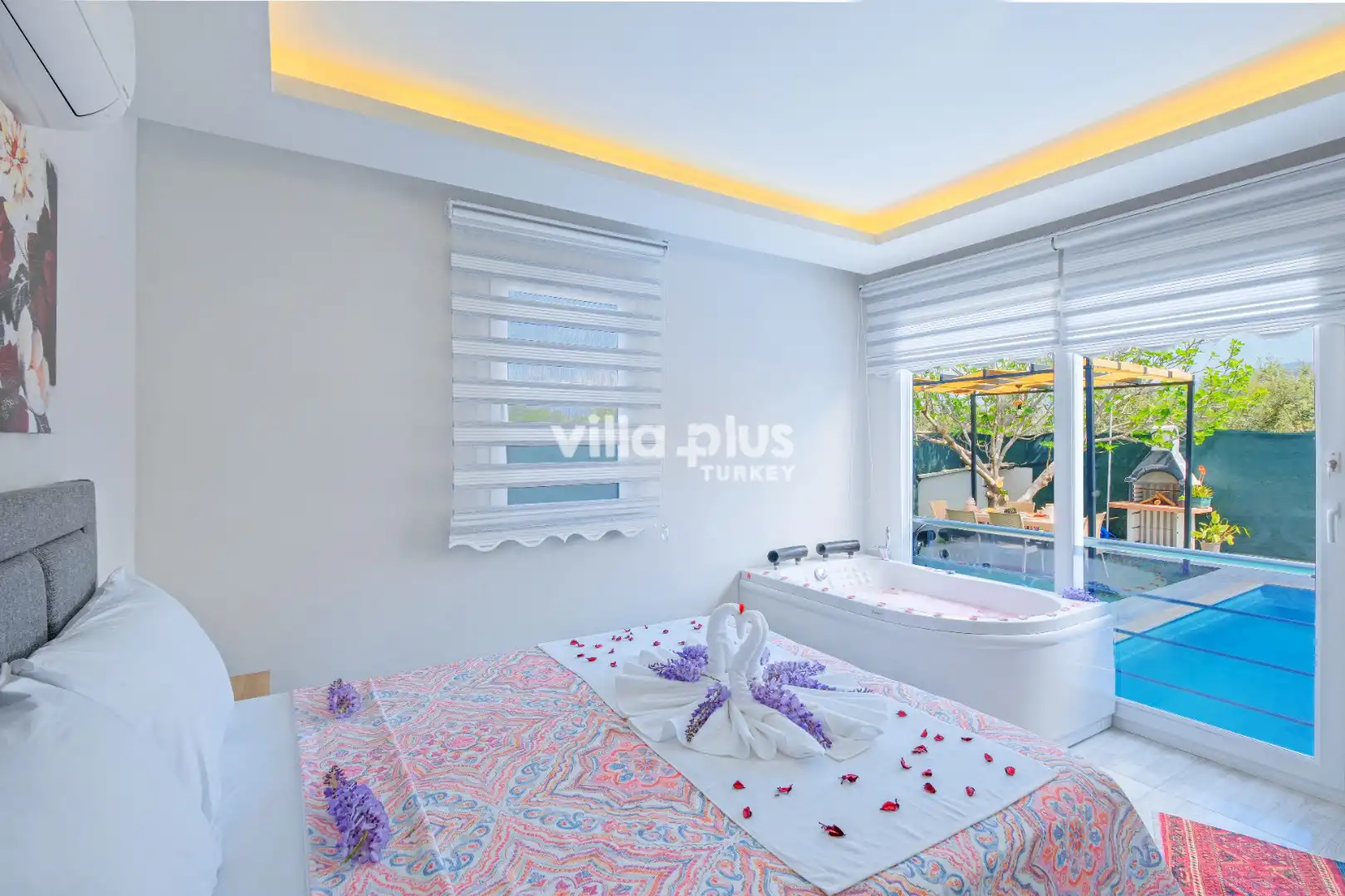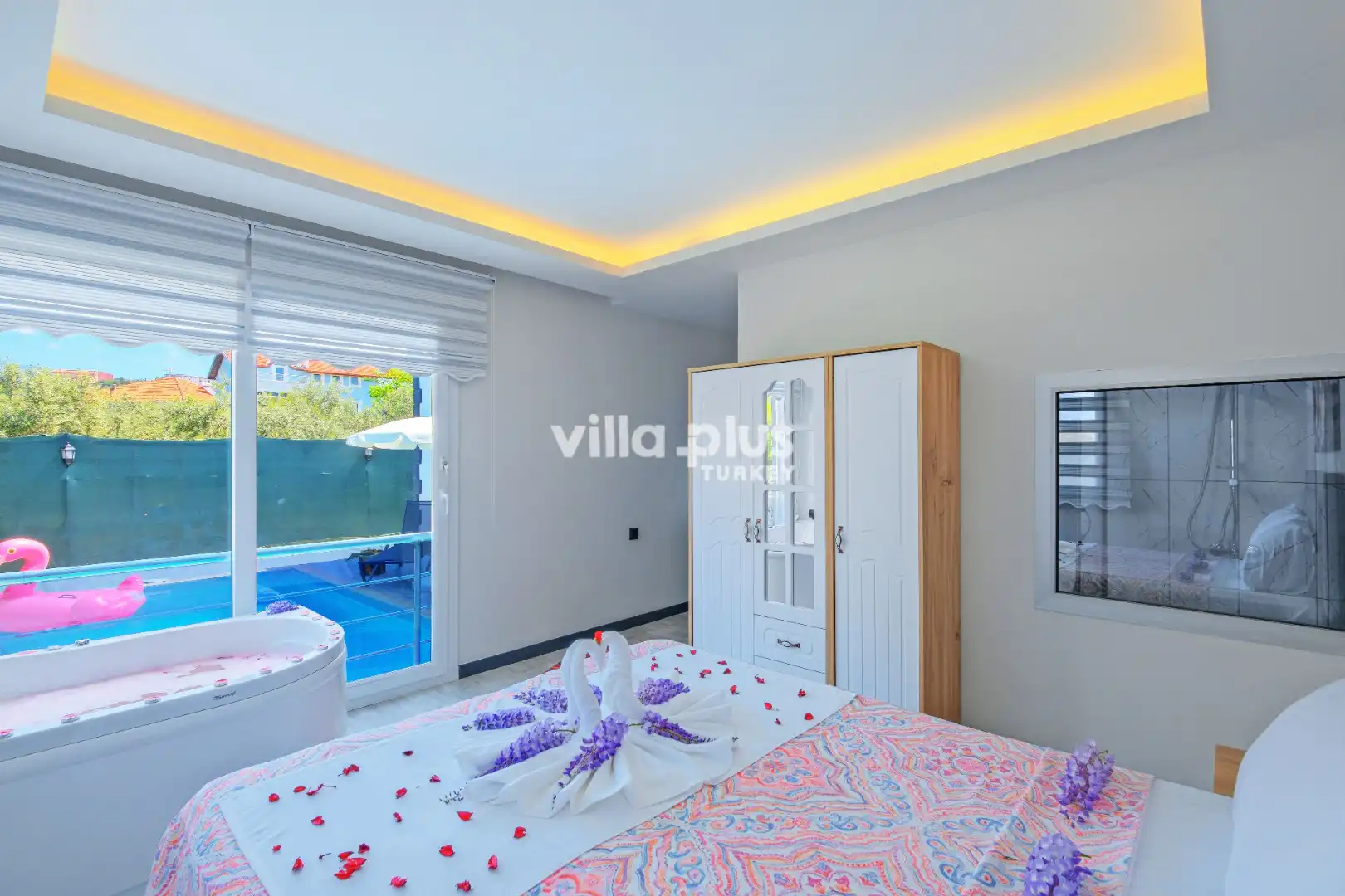 Located in the peaceful atmosphere of Fethiye Karaçulha, this villa for 4 people offers comfort and privacy together. The completely sheltered pool area is designed to be invisible from the outside and offers an ideal environment for you to have pleasant moments with your loved ones. The jacuzzi in the double bedroom of the villa will allow you to relax while relieving the tiredness of the day. This villa, which is a perfect option for those looking for a quiet and special holiday in touch with nature, offers an unforgettable accommodation experience with its comfortable interiors and peaceful surroundings.