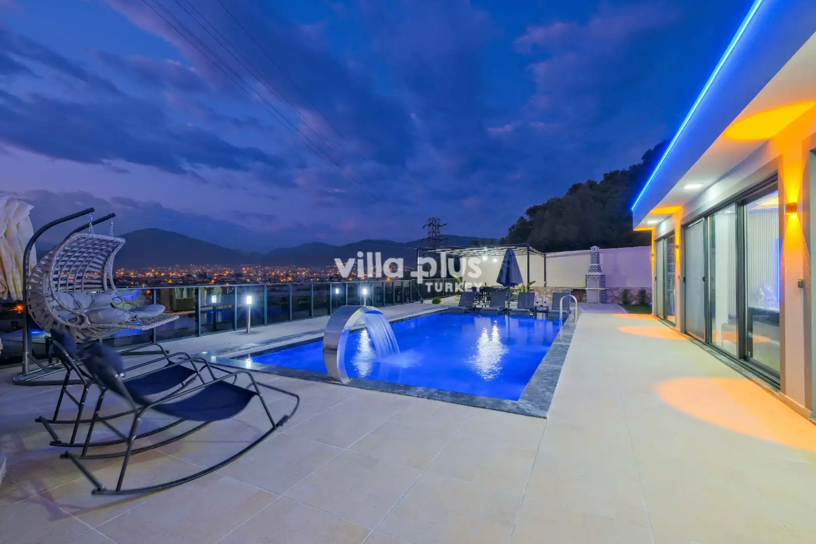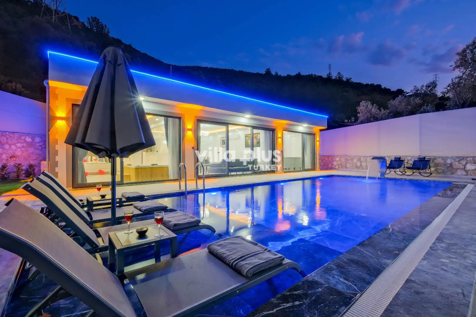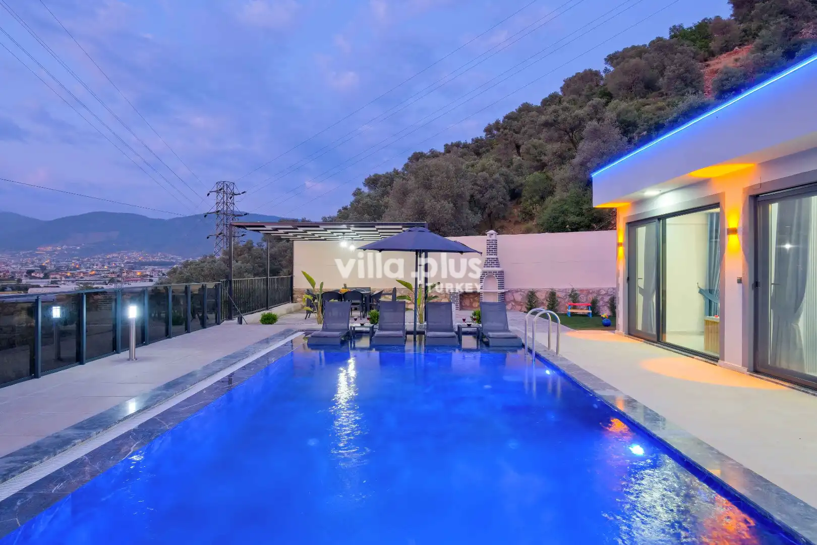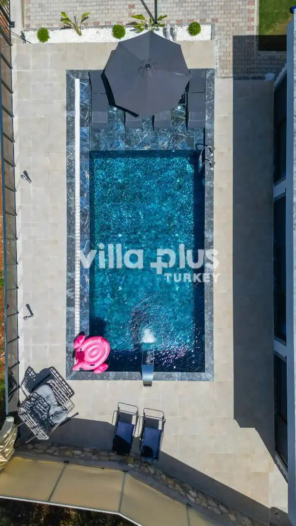 This elegant villa, located in the Karaçulha area of Fethiye, features 2 bedrooms and accommodates up to 4 guests, making it a perfect holiday experience for honeymooners and small families. Nestled in nature, the villa offers a private pool and a spacious garden, creating a true sanctuary of tranquility.