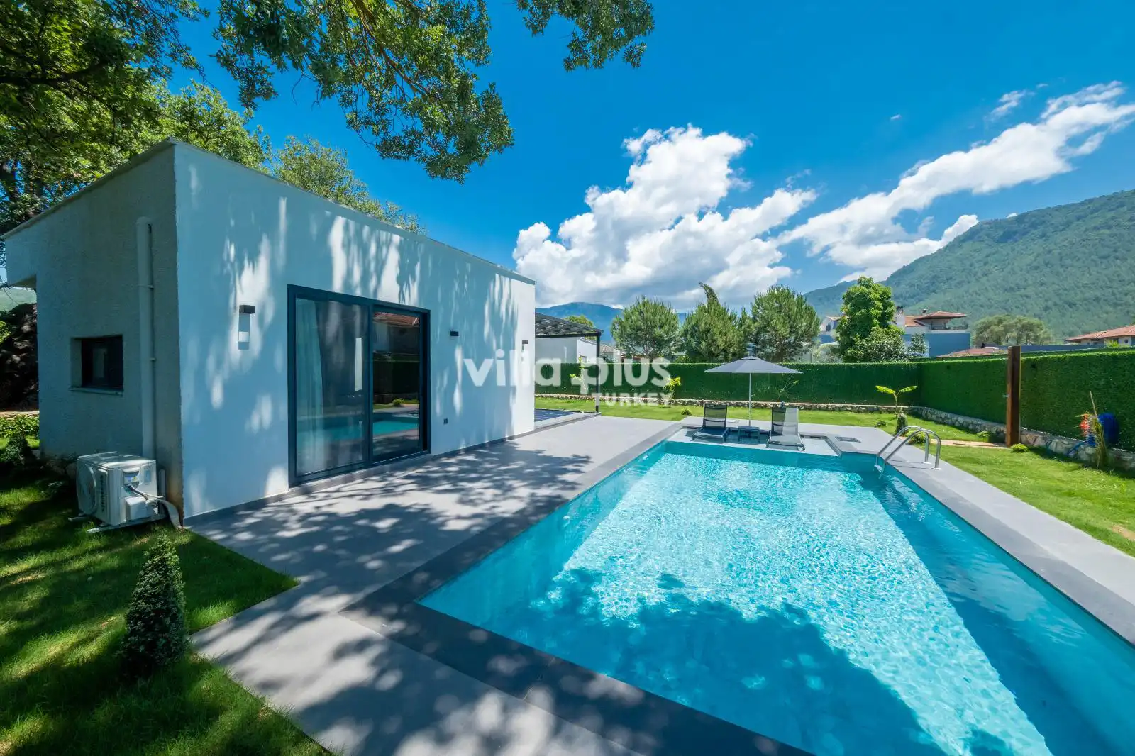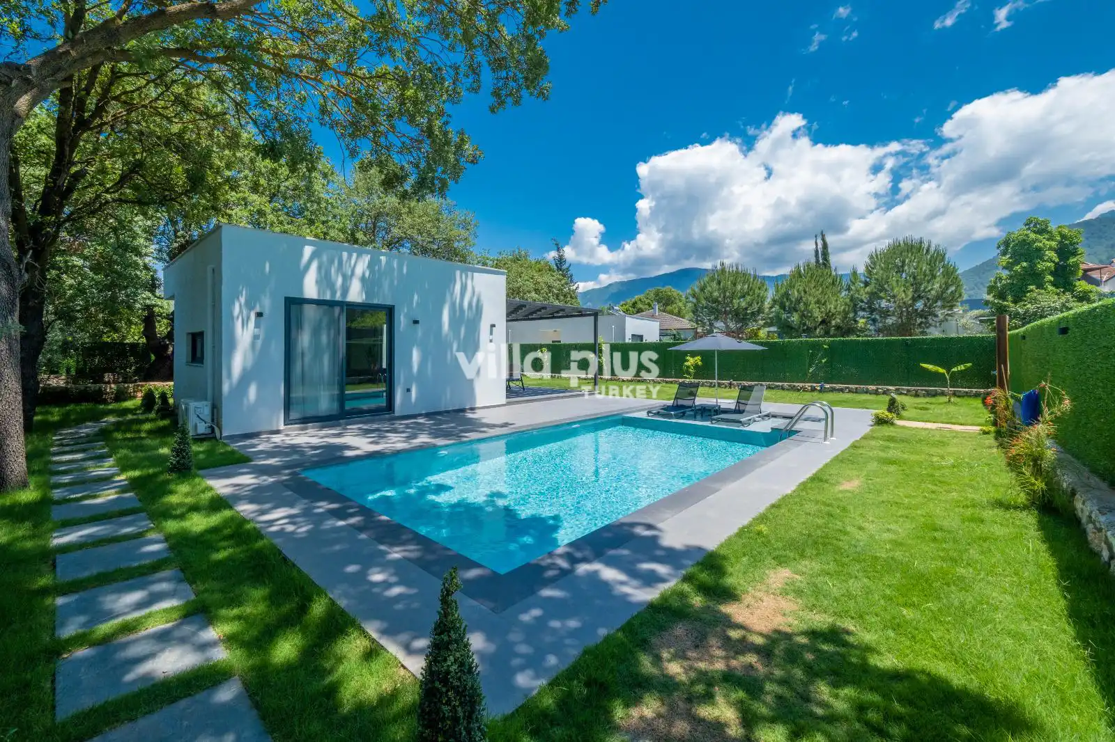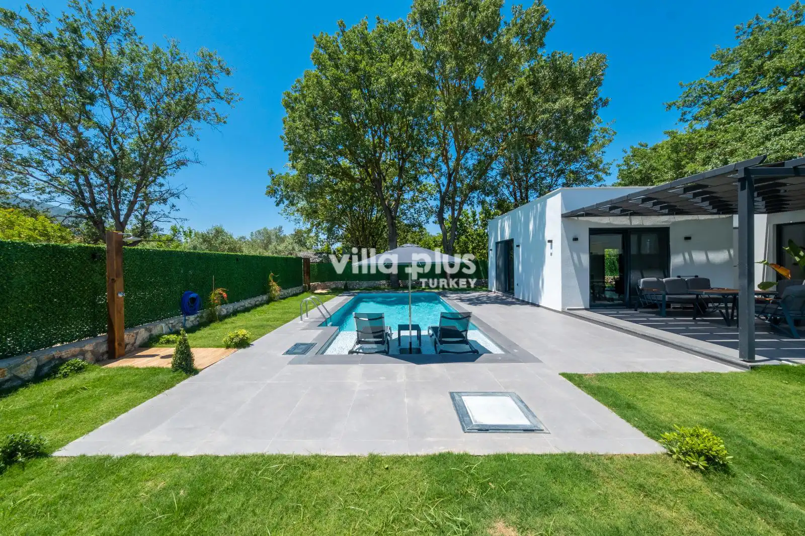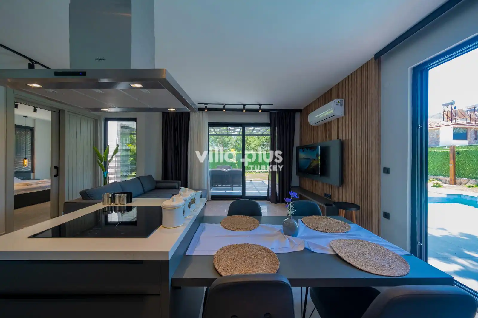 Villa Tivona 3, located in the unique natural setting of Kayaköy, Fethiye, offers a private holiday space with its secluded garden and private pool. Our 1-bedroom villa, designed with luxurious details, accommodates 2 guests, making it a perfect choice for honeymooners and those seeking tranquility.