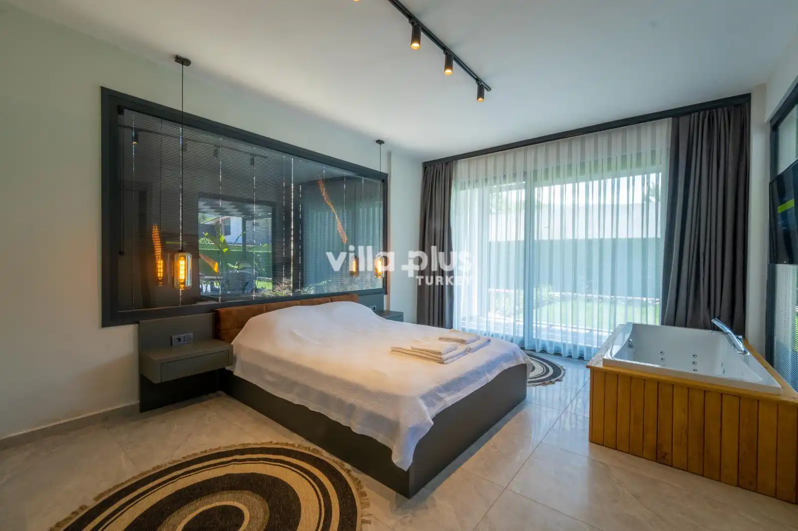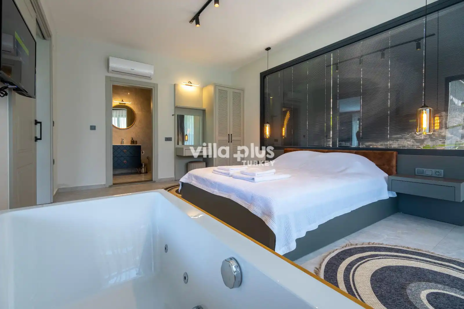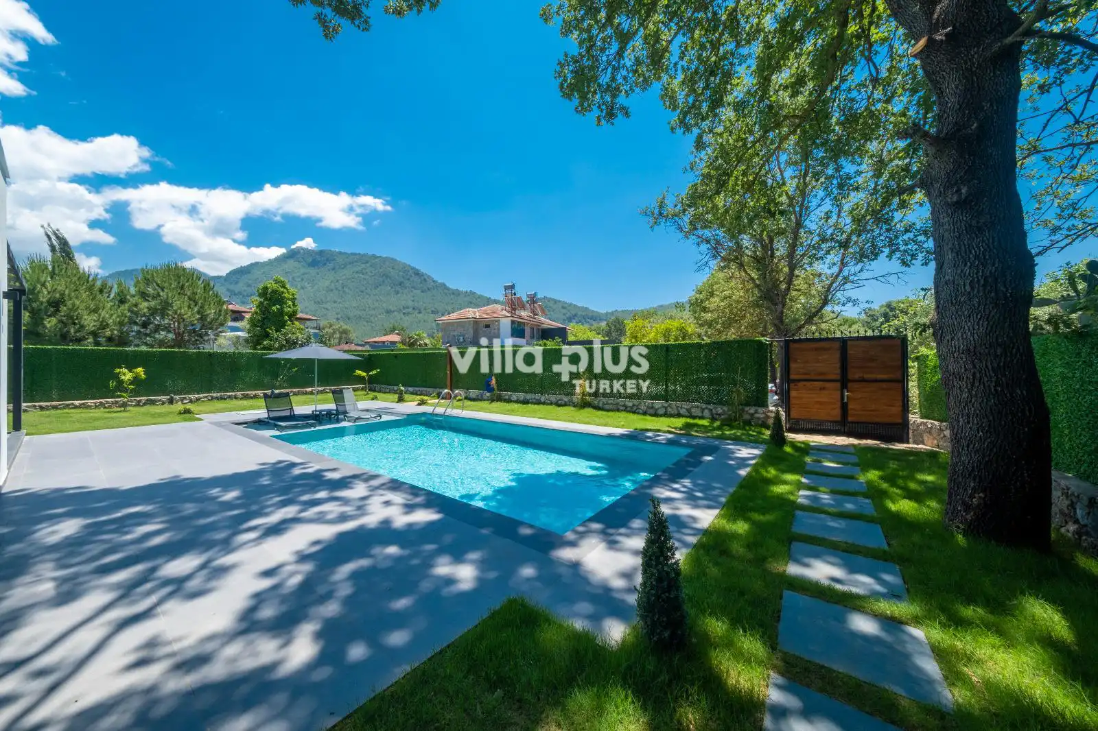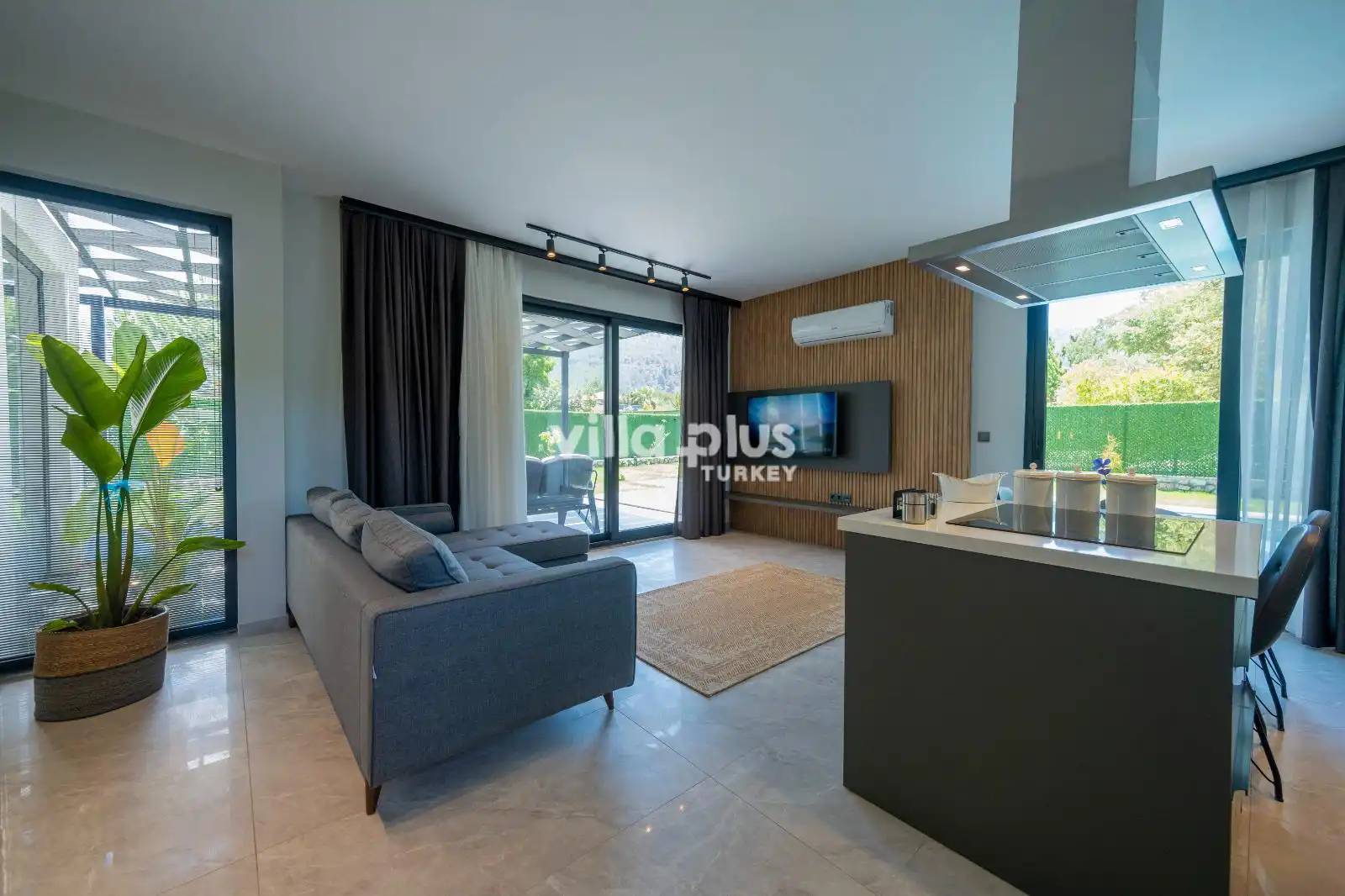 Villa Tivona 3, located in the unique natural setting of Kayaköy, Fethiye, offers a private holiday space with its secluded garden and private pool. Our 1-bedroom villa, designed with luxurious details, accommodates 2 guests, making it a perfect choice for honeymooners and those seeking tranquility.