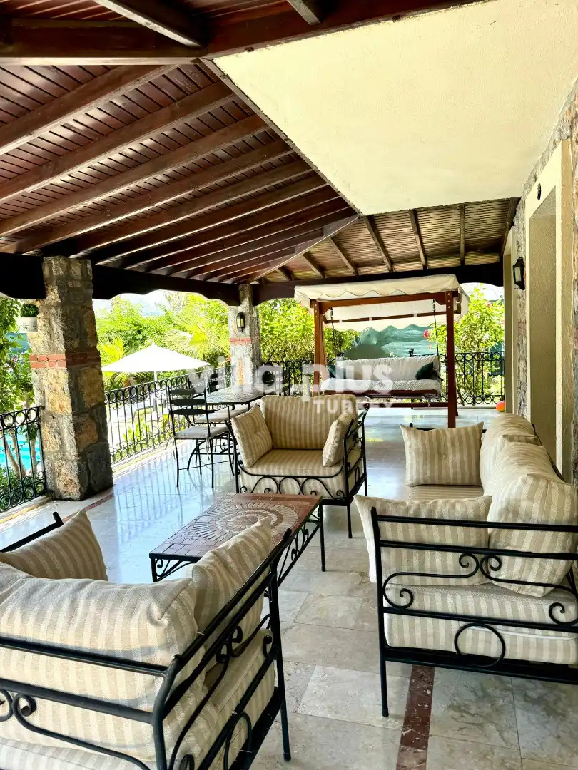 Located in Ovacık, one of Fethiye’s most popular areas, this exclusive villa is an ideal choice for guests seeking a peaceful holiday in touch with nature. With its spacious, lush green garden, large private swimming pool, and fully secluded design, it also offers a perfect accommodation option for conservative families.