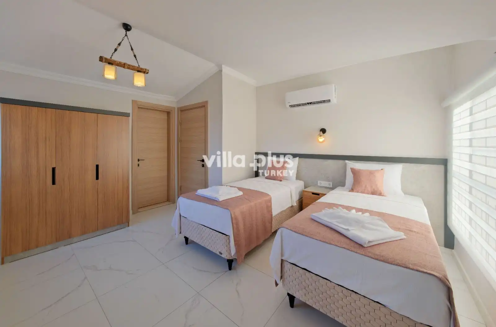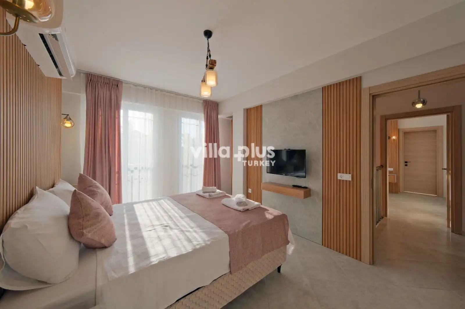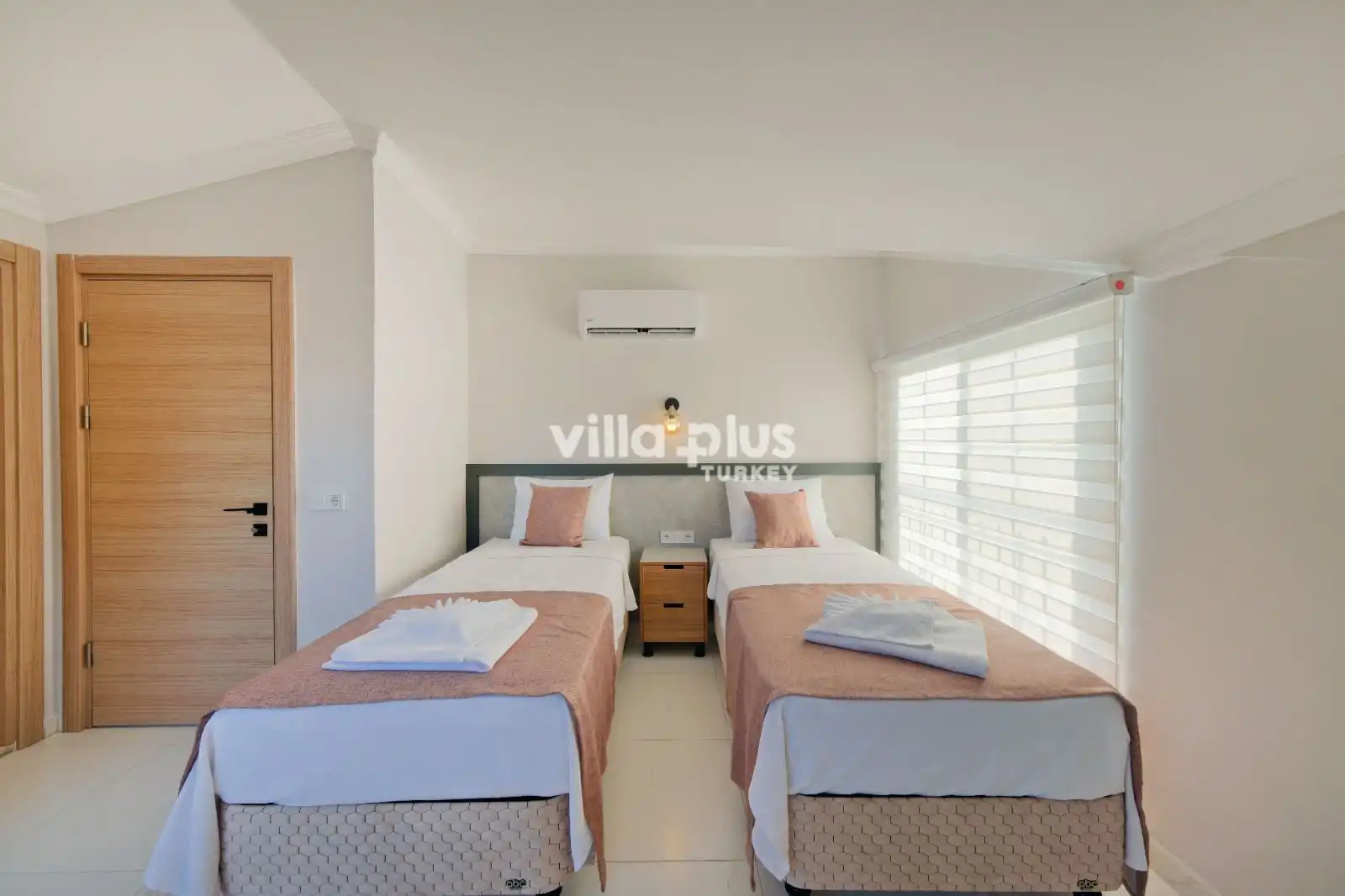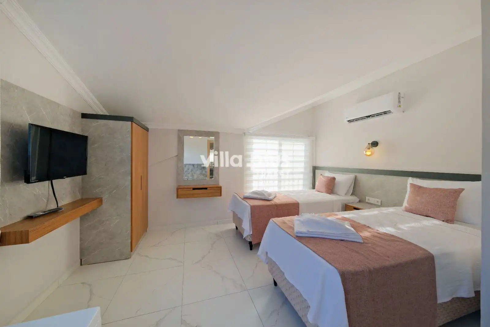 Villa Virtus is a triplex villa located in Hisaronu, Fethiye, a 5-minute drive from Oludeniz Beach. With 4 bedrooms and 4 bathrooms and toilets, our villa stands out as an ideal option for large families and crowded family groups with its accommodation capacity of 8 people. With its sheltered private swimming pool in the large garden area, comfortable sun loungers and indispensable barbecue in the summer months, our villa awaits guests who want to spend a secluded and peaceful holiday.