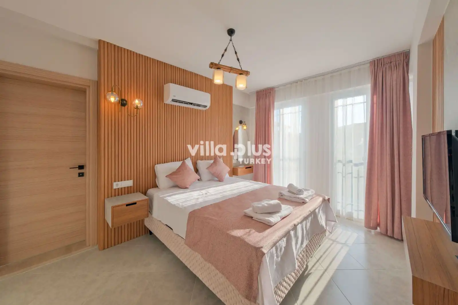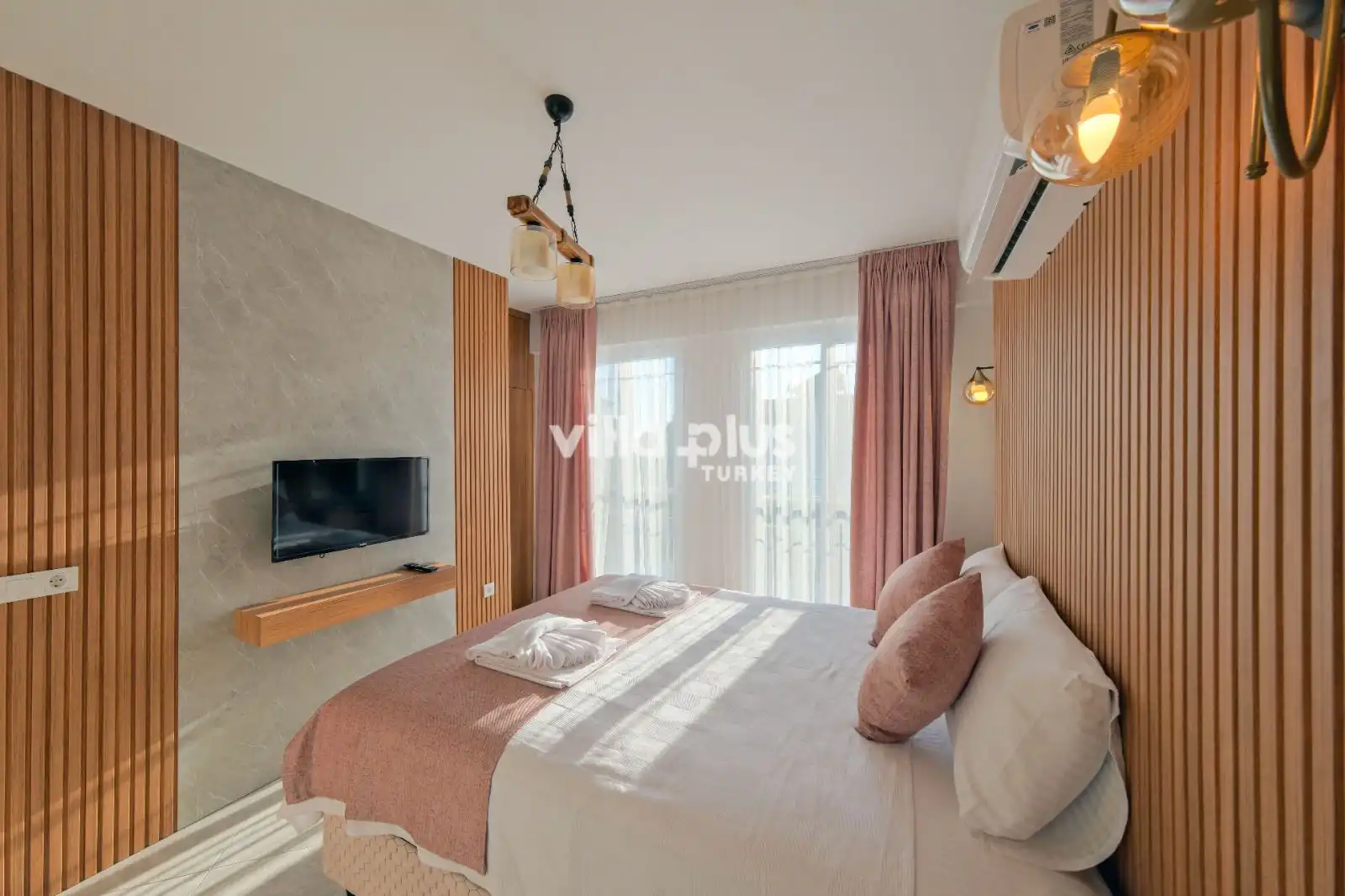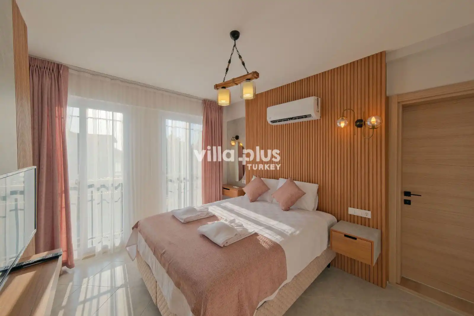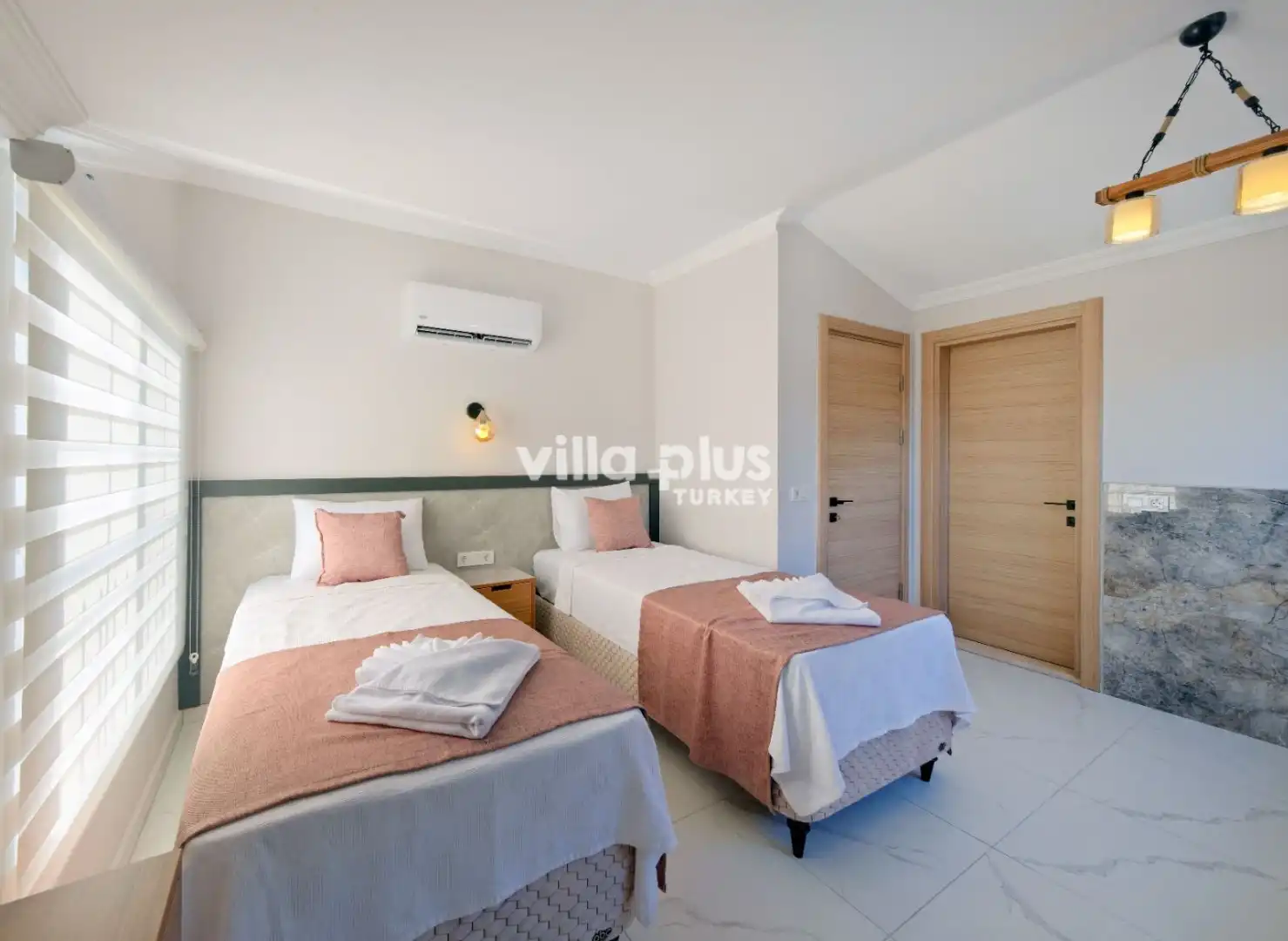 Villa Virtus is a triplex villa located in Hisaronu, Fethiye, a 5-minute drive from Oludeniz Beach. With 4 bedrooms and 4 bathrooms and toilets, our villa stands out as an ideal option for large families and crowded family groups with its accommodation capacity of 8 people. With its sheltered private swimming pool in the large garden area, comfortable sun loungers and indispensable barbecue in the summer months, our villa awaits guests who want to spend a secluded and peaceful holiday.