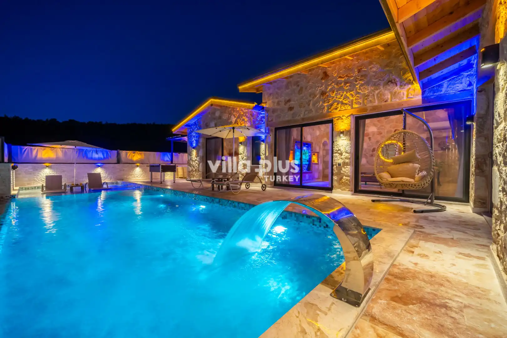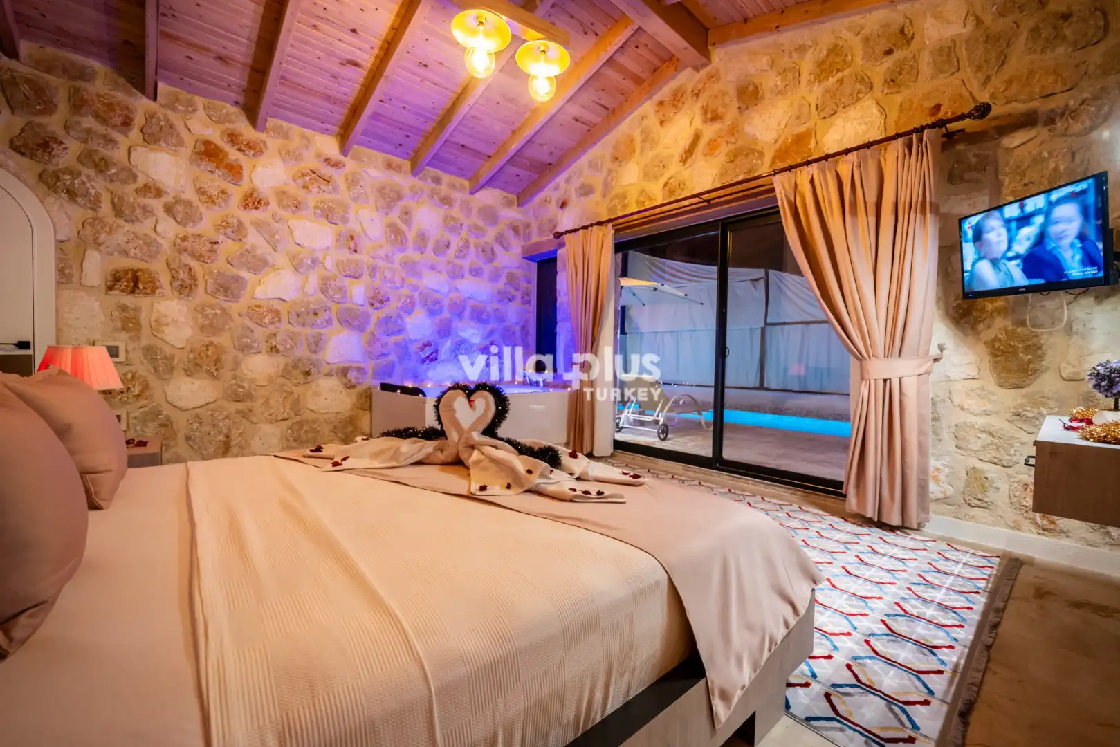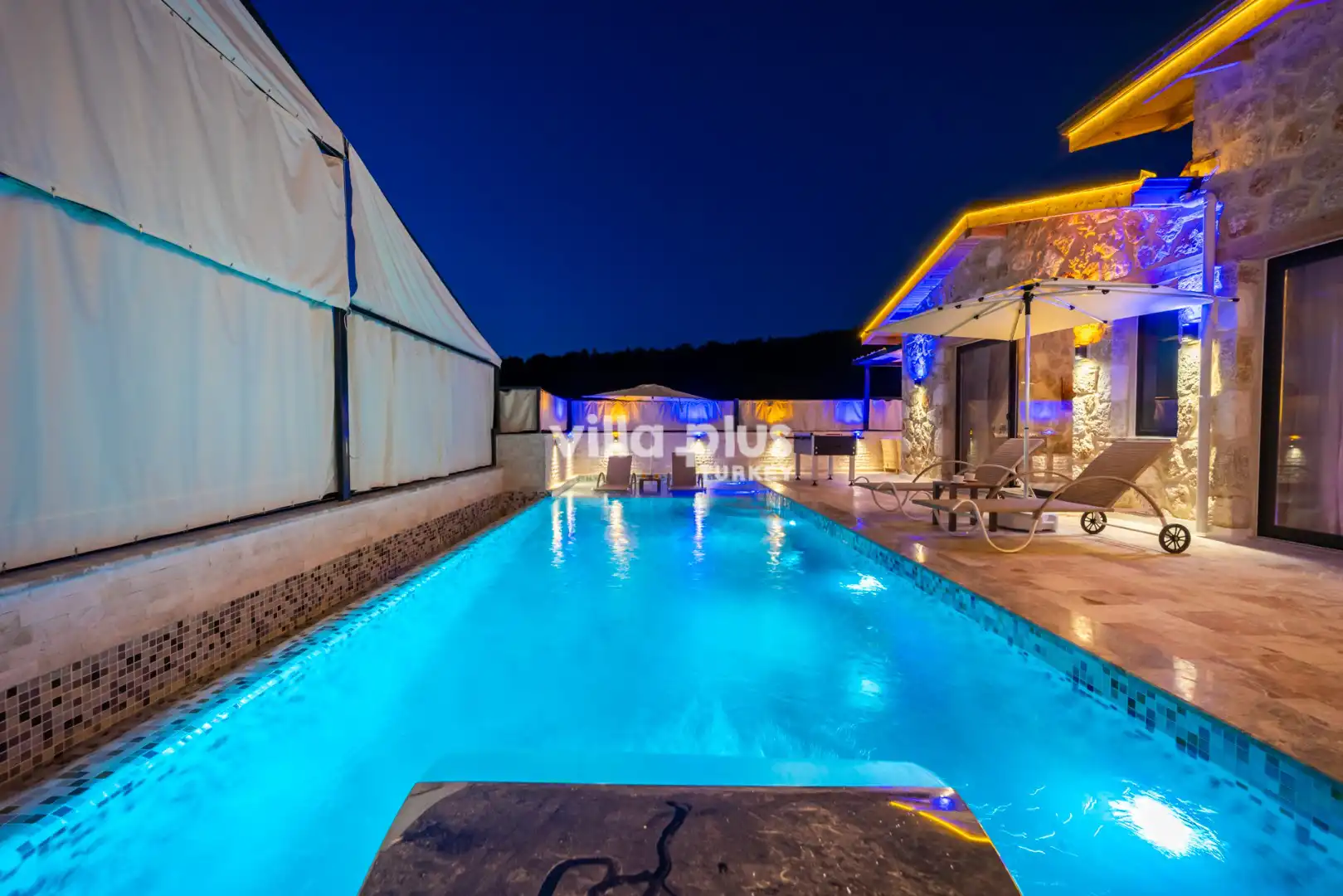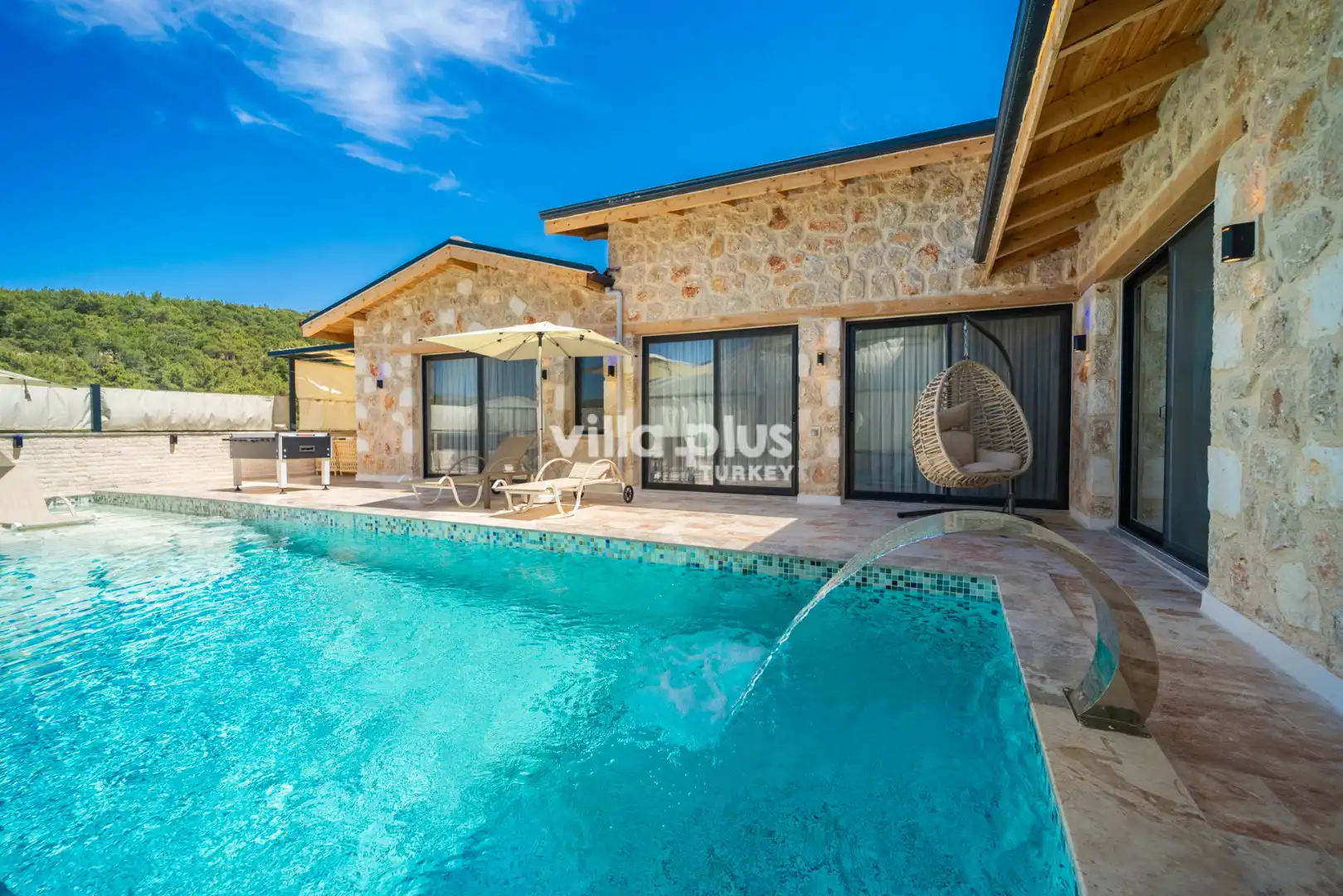 Located in Kalkan's Akbel area, Villa Visvonte Premium offers accommodation for up to 4 people with 2 bedrooms. With its stone and wood architecture, it harmonizes with nature. The pool terrace prioritizes privacy by offering a special atmosphere. The master bedroom features a double jacuzzi.
