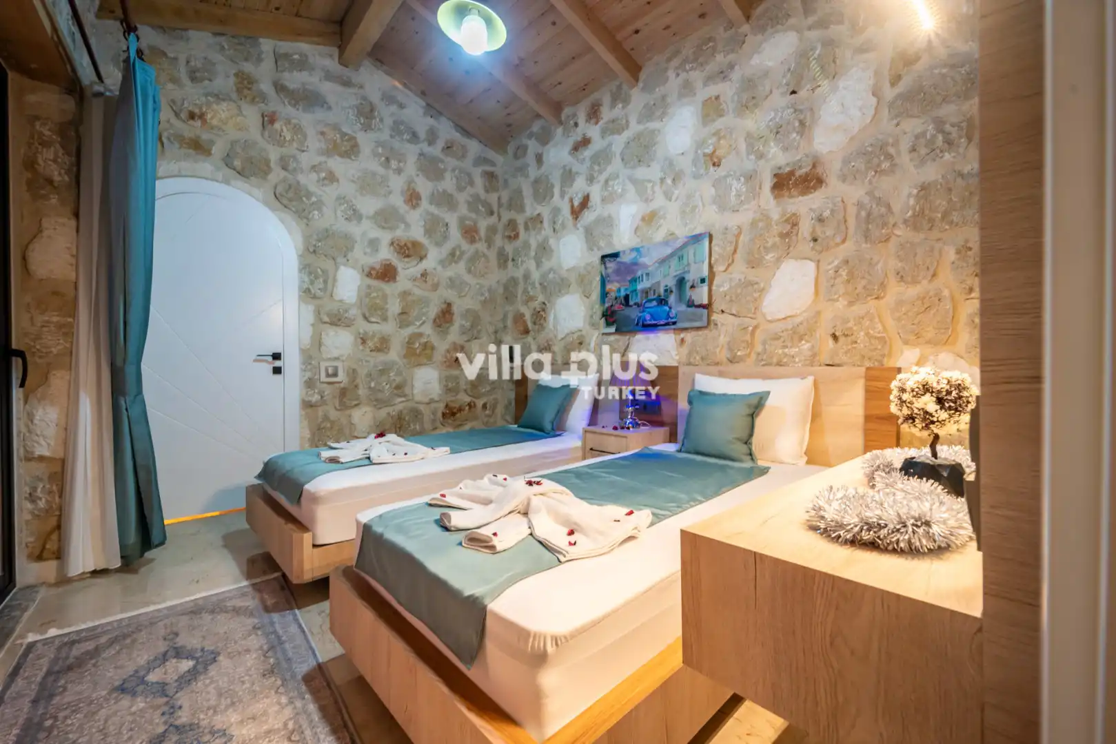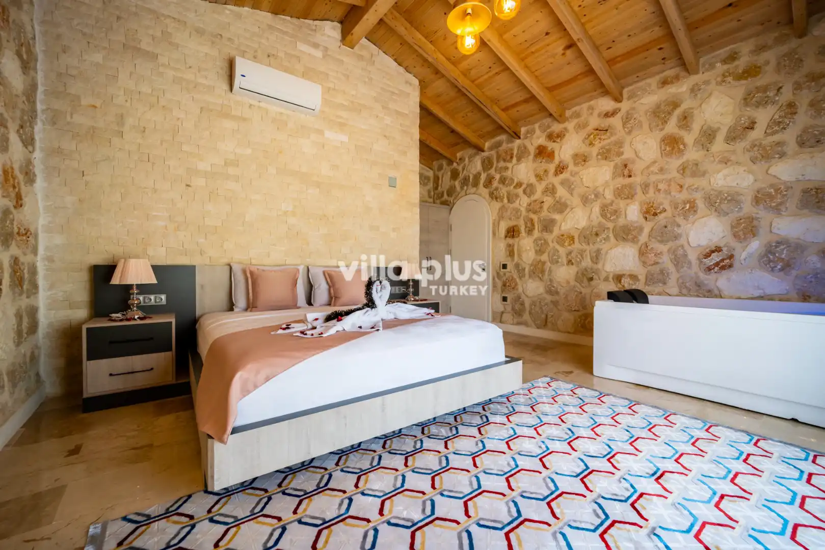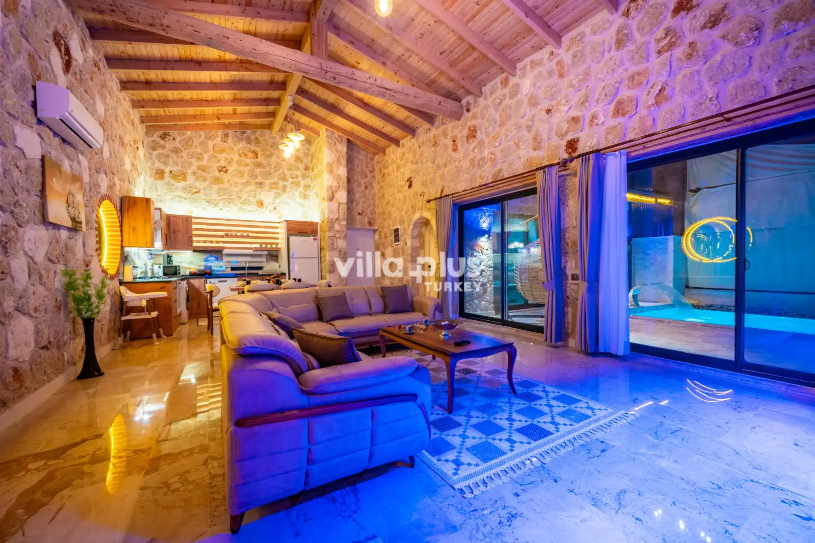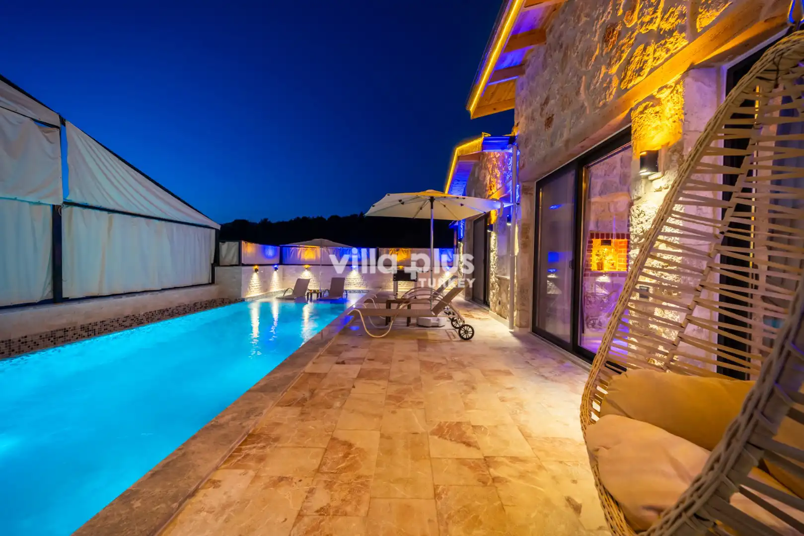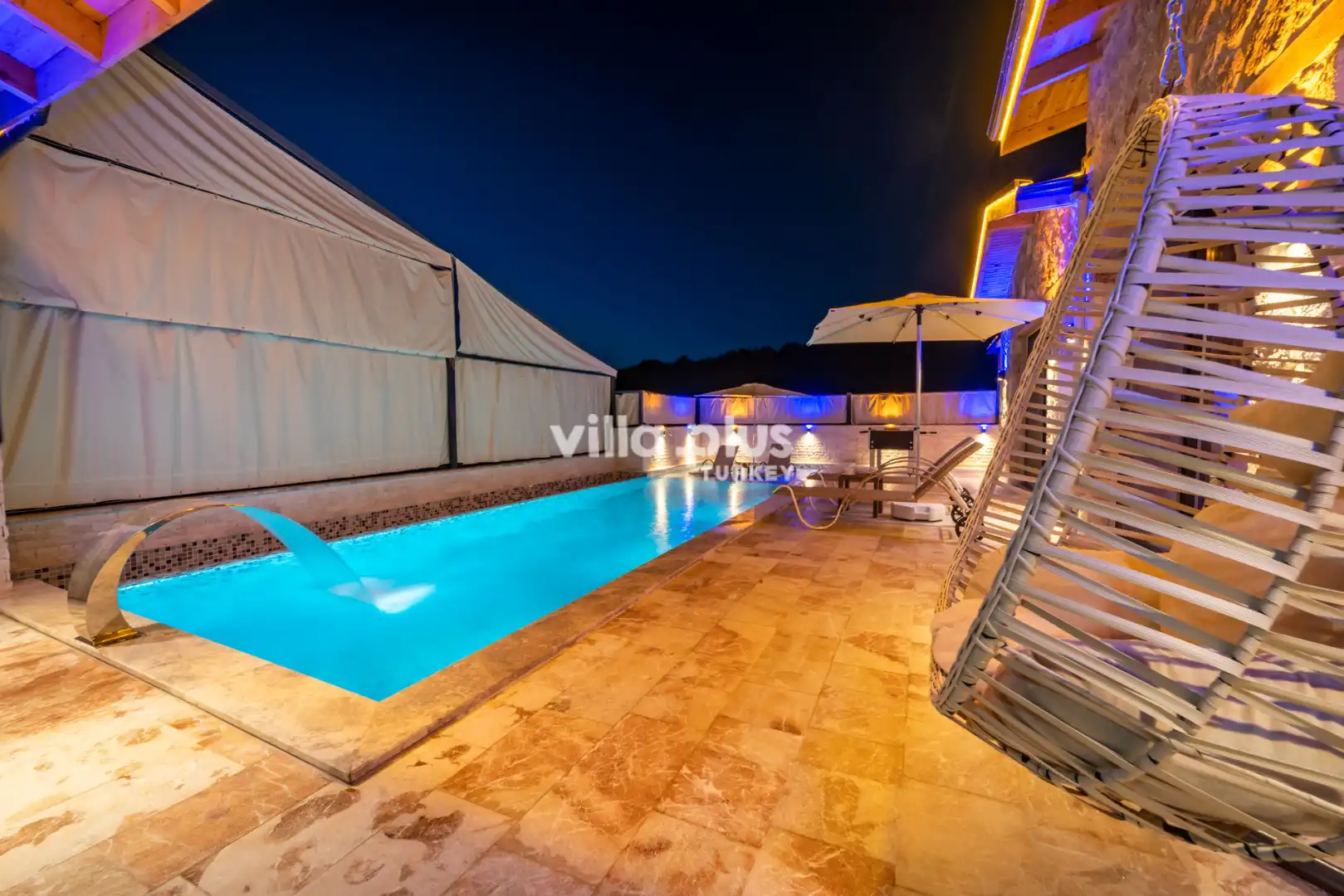 Located in Kalkan's Akbel area, Villa Visvonte Premium offers accommodation for up to 4 people with 2 bedrooms. With its stone and wood architecture, it harmonizes with nature. The pool terrace prioritizes privacy by offering a special atmosphere. The master bedroom features a double jacuzzi.