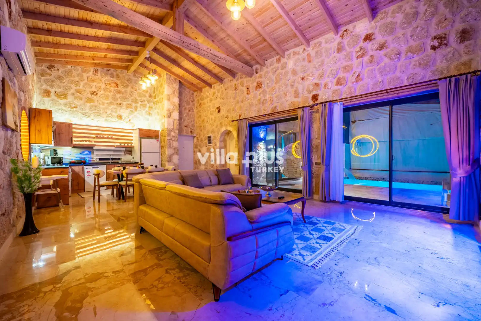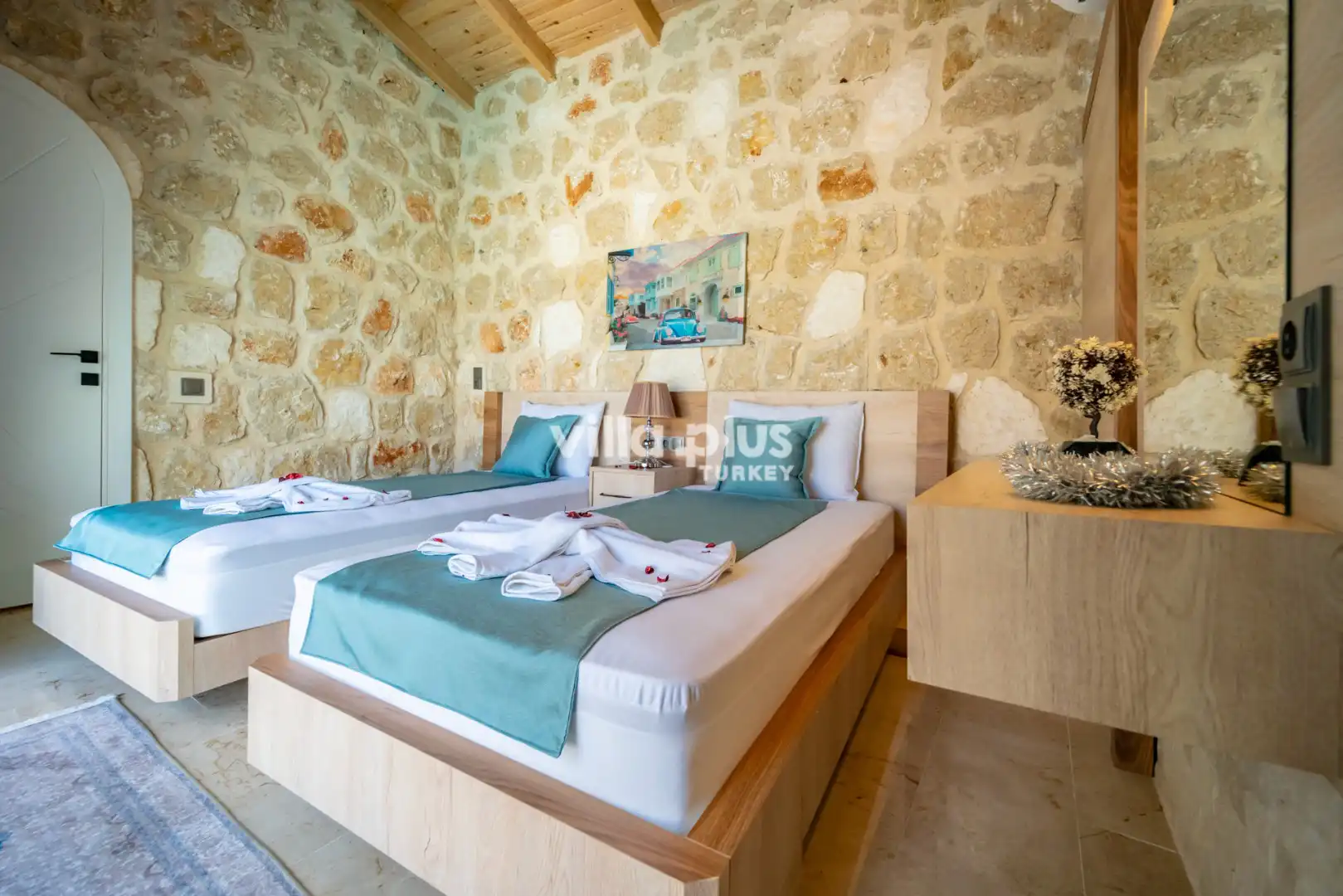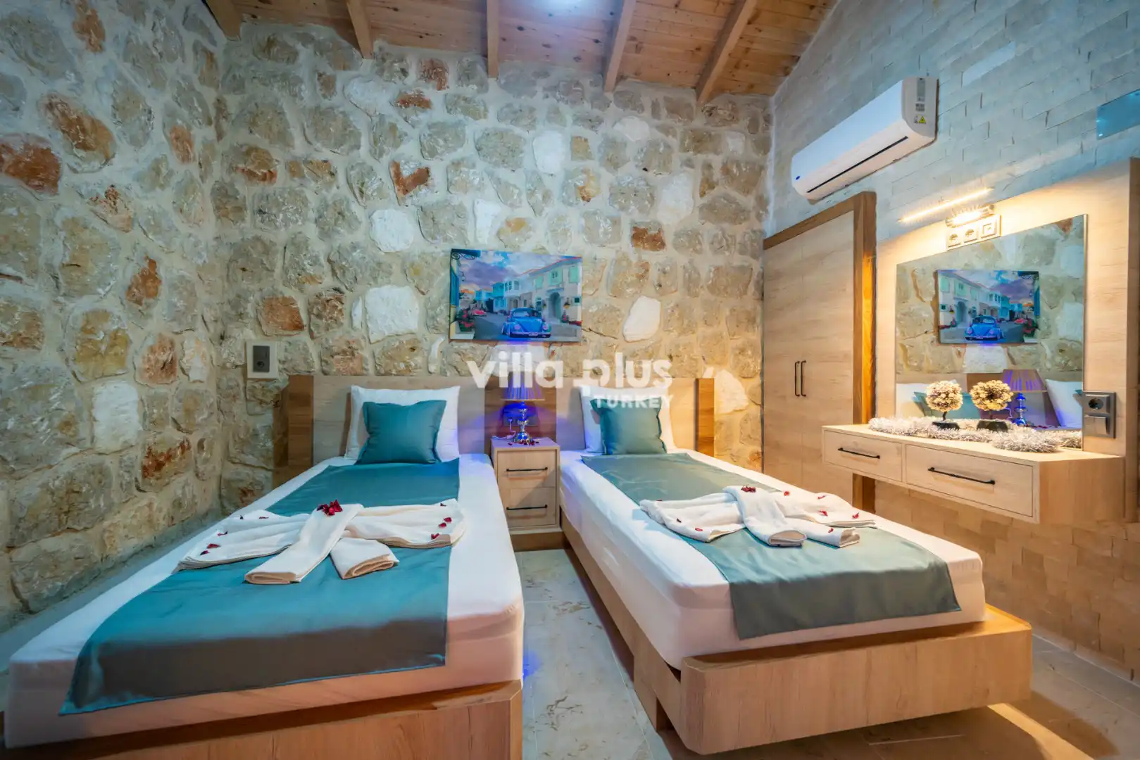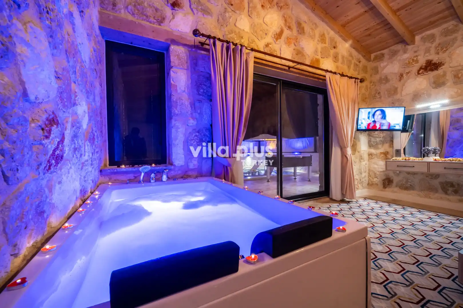 Located in Kalkan's Akbel area, Villa Visvonte Premium offers accommodation for up to 4 people with 2 bedrooms. With its stone and wood architecture, it harmonizes with nature. The pool terrace prioritizes privacy by offering a special atmosphere. The master bedroom features a double jacuzzi.