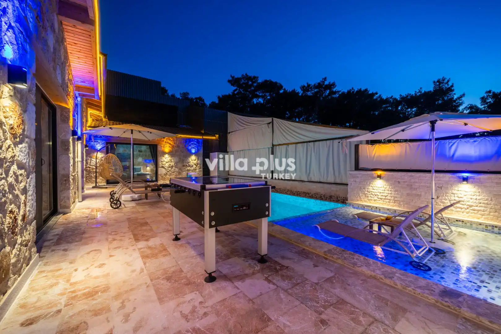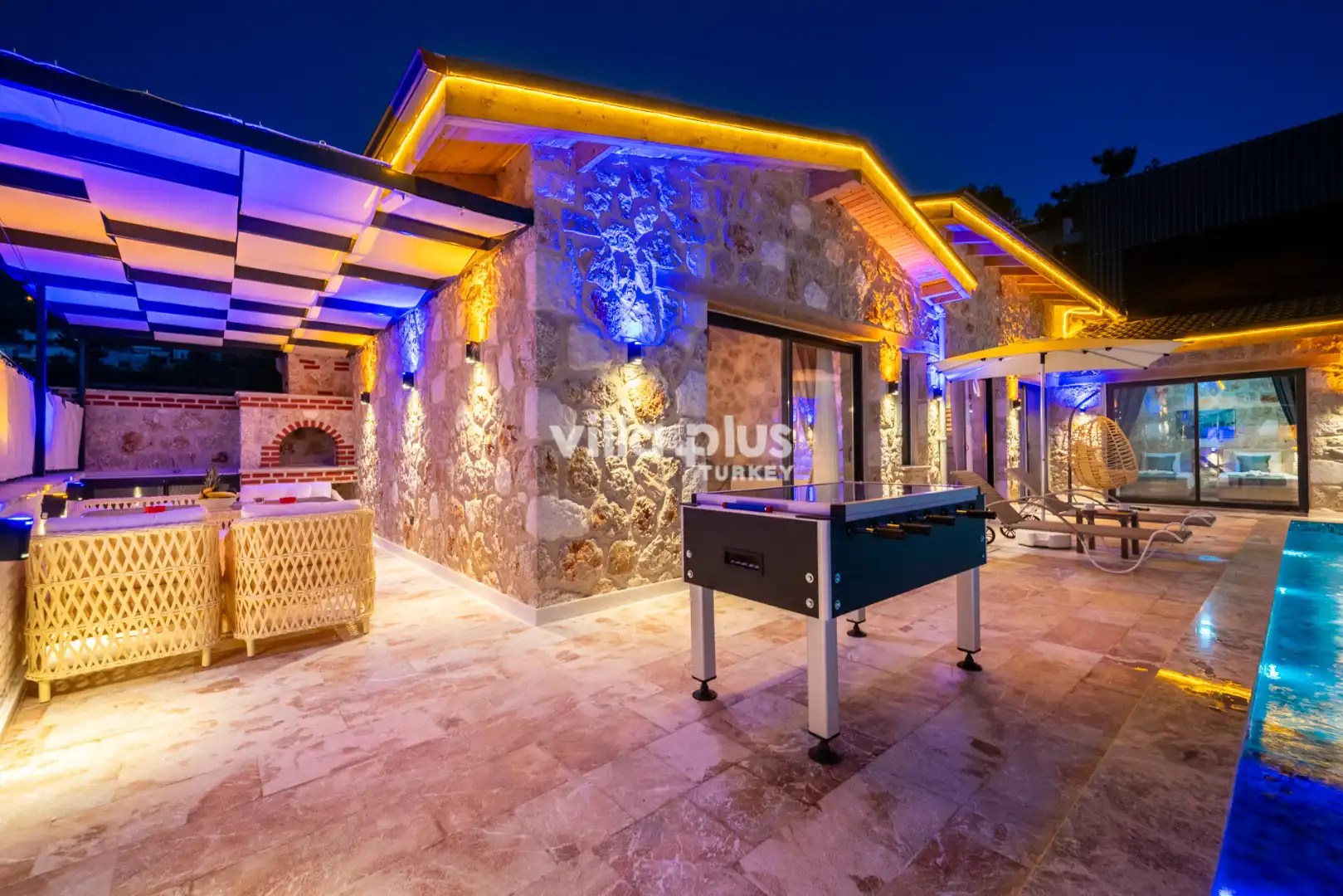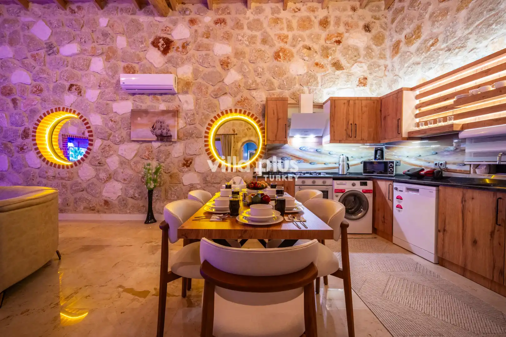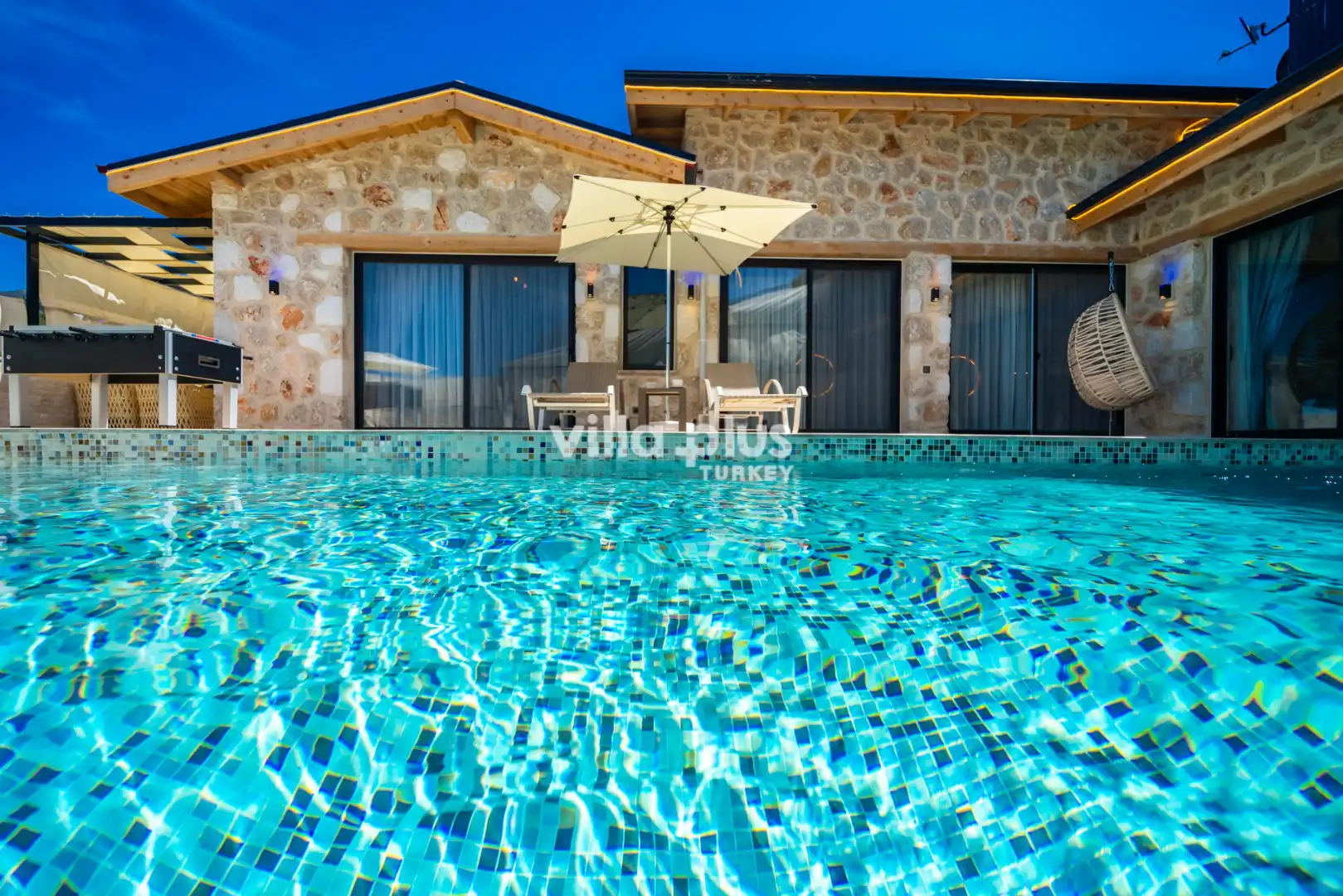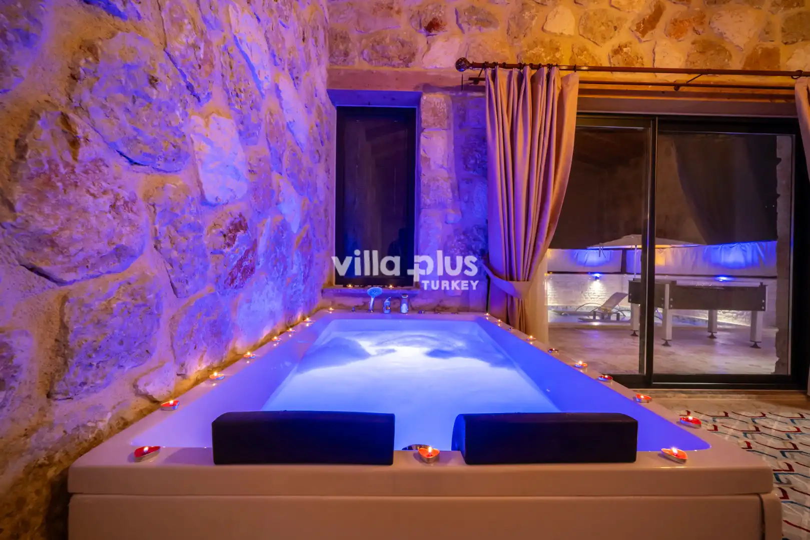 Located in Kalkan's Akbel area, Villa Visvonte Premium offers accommodation for up to 4 people with 2 bedrooms. With its stone and wood architecture, it harmonizes with nature. The pool terrace prioritizes privacy by offering a special atmosphere. The master bedroom features a double jacuzzi.